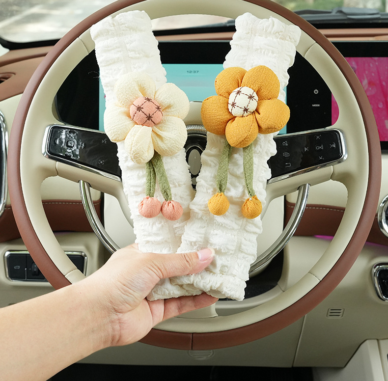 자동차 안전벨트 어깨 보호대 귀여운 퍼프 무늬 어린이용 차량용 어깨 보호대 자동차 인테리어 용품