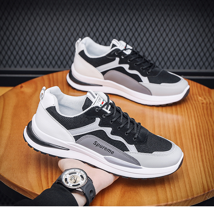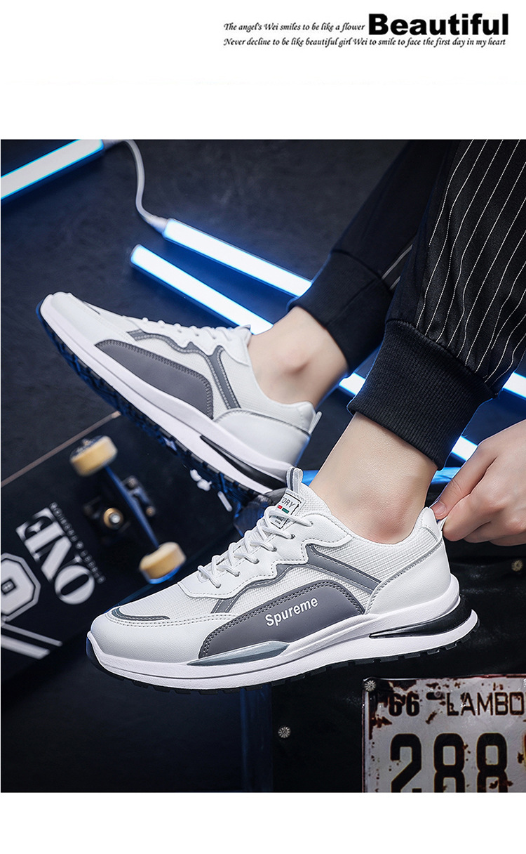 남성 신발 여름 새로운 통기성 메쉬 신발 남성용 트렌디 올 매치 화이트 신발 두꺼운 밑창 스포츠 캐주얼 트렌디 신발스토어 가기