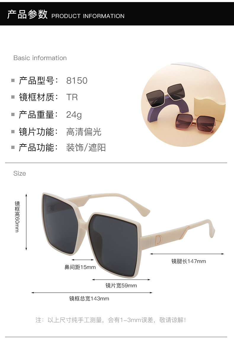 여성용 인터넷 연예인 같은 스타일 사각 편광 선글라스, 문자 D, 고급 선글라스, 초경량 TR 플레인 빅 프레임 패션스토어 가기