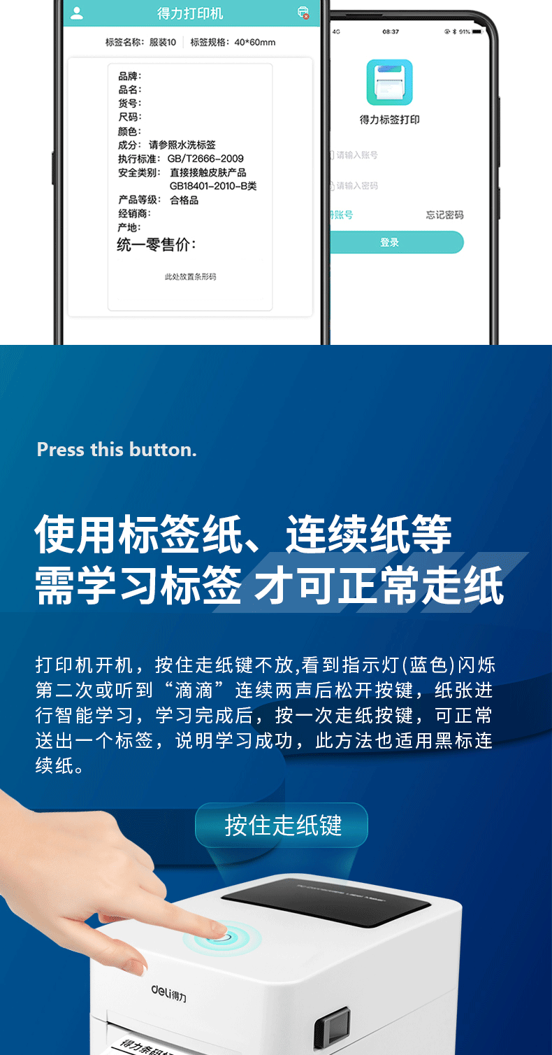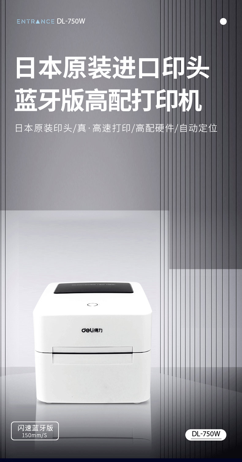 델리 DL-750W 라벨 블루투스 프린터 열 표현 표면 단일 2 차원 코드 태그 스티커 바코드 기계