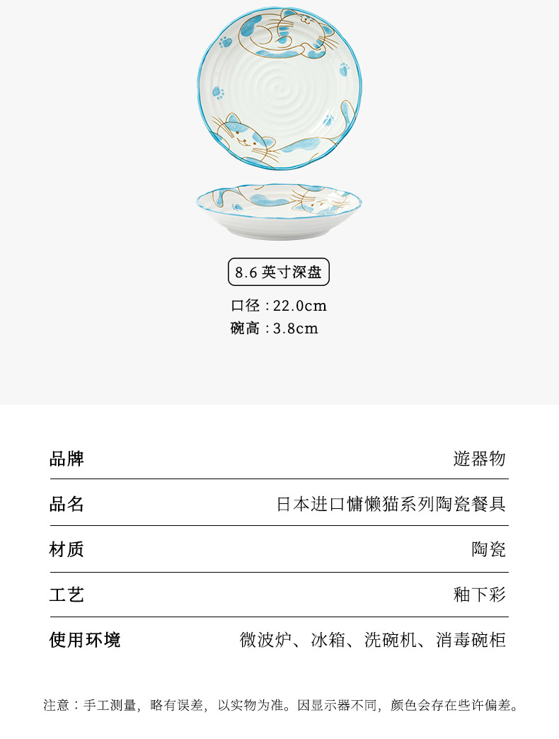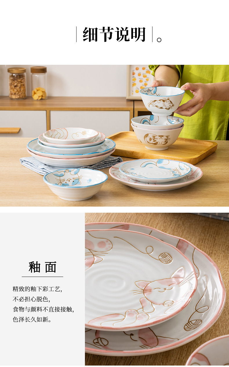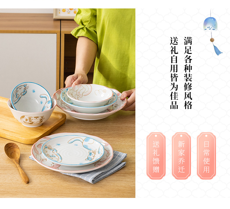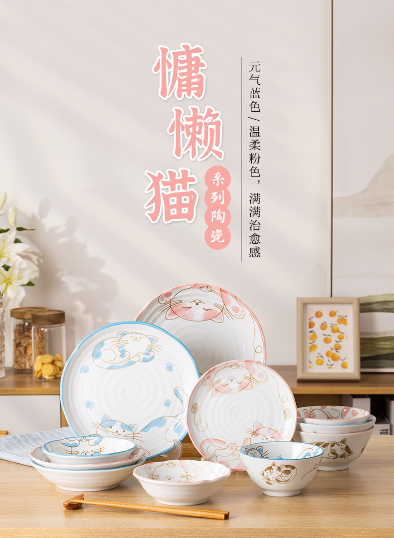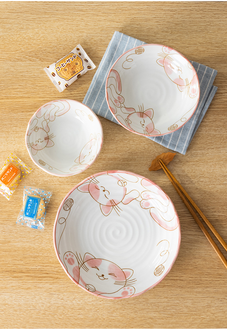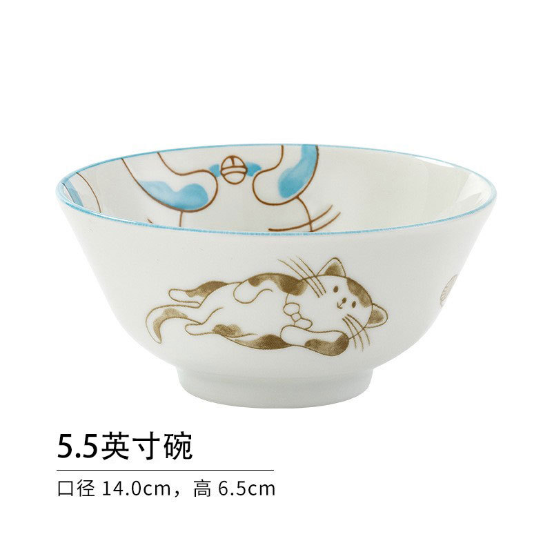 일본 수입 세라믹 그릇 게으른 고양이 시리즈 귀여운 동물 고양이 밥 그릇 수프 그릇 일본 식기 유약 색상스토어 가기