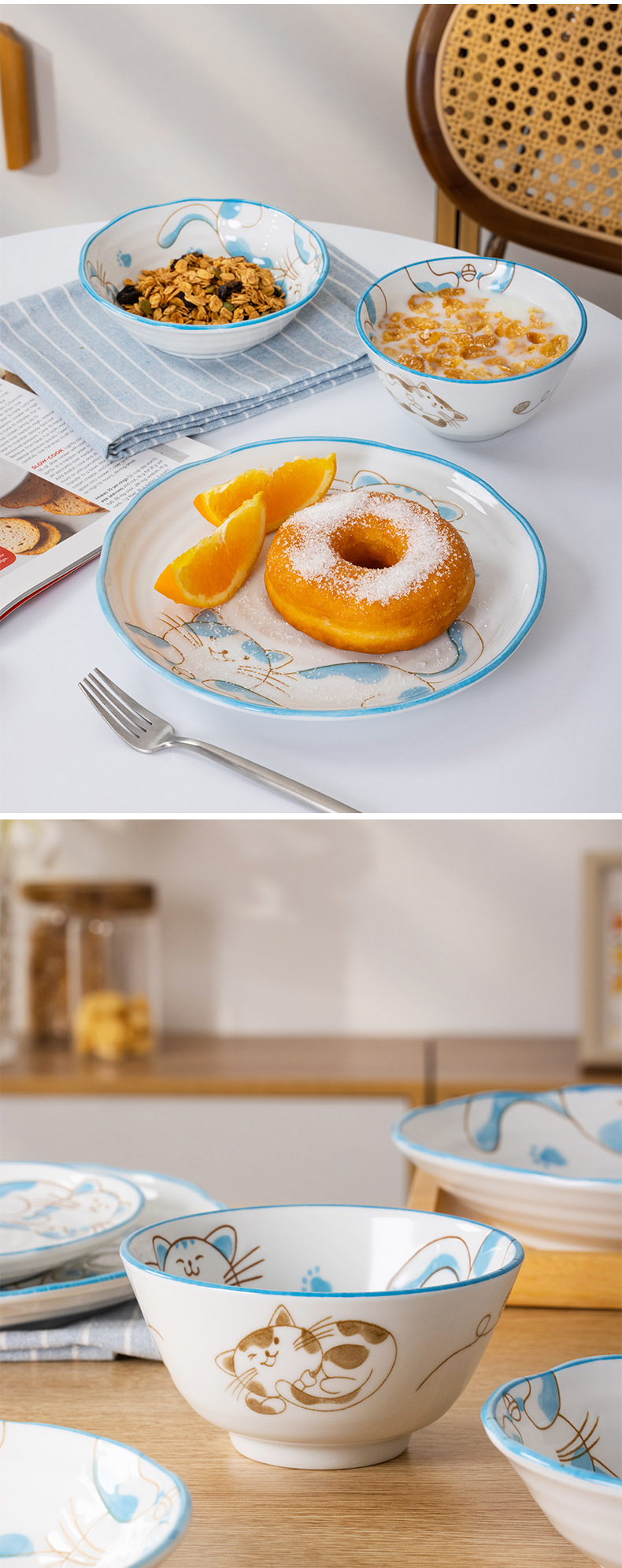 일본 수입 세라믹 그릇 게으른 고양이 시리즈 귀여운 동물 고양이 밥 그릇 수프 그릇 일본 식기 유약 색상
