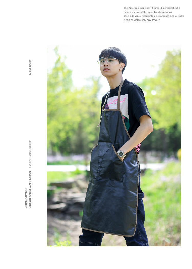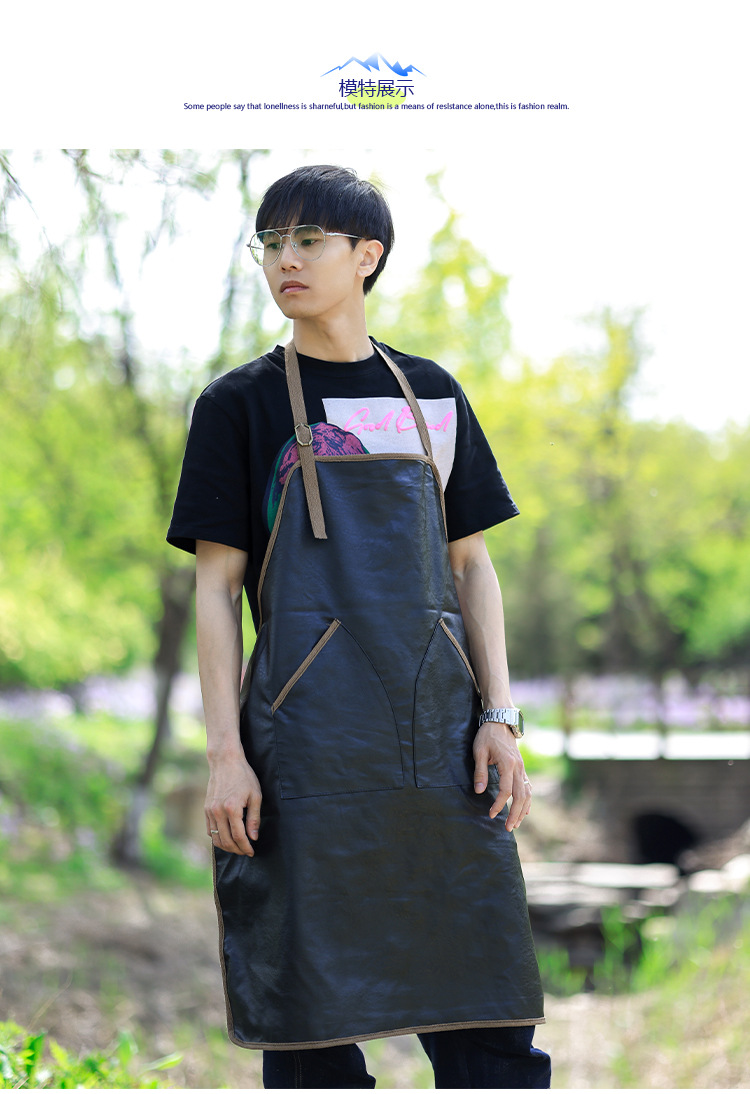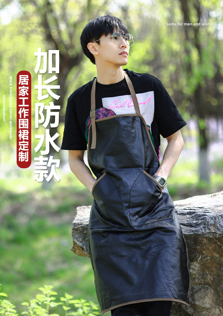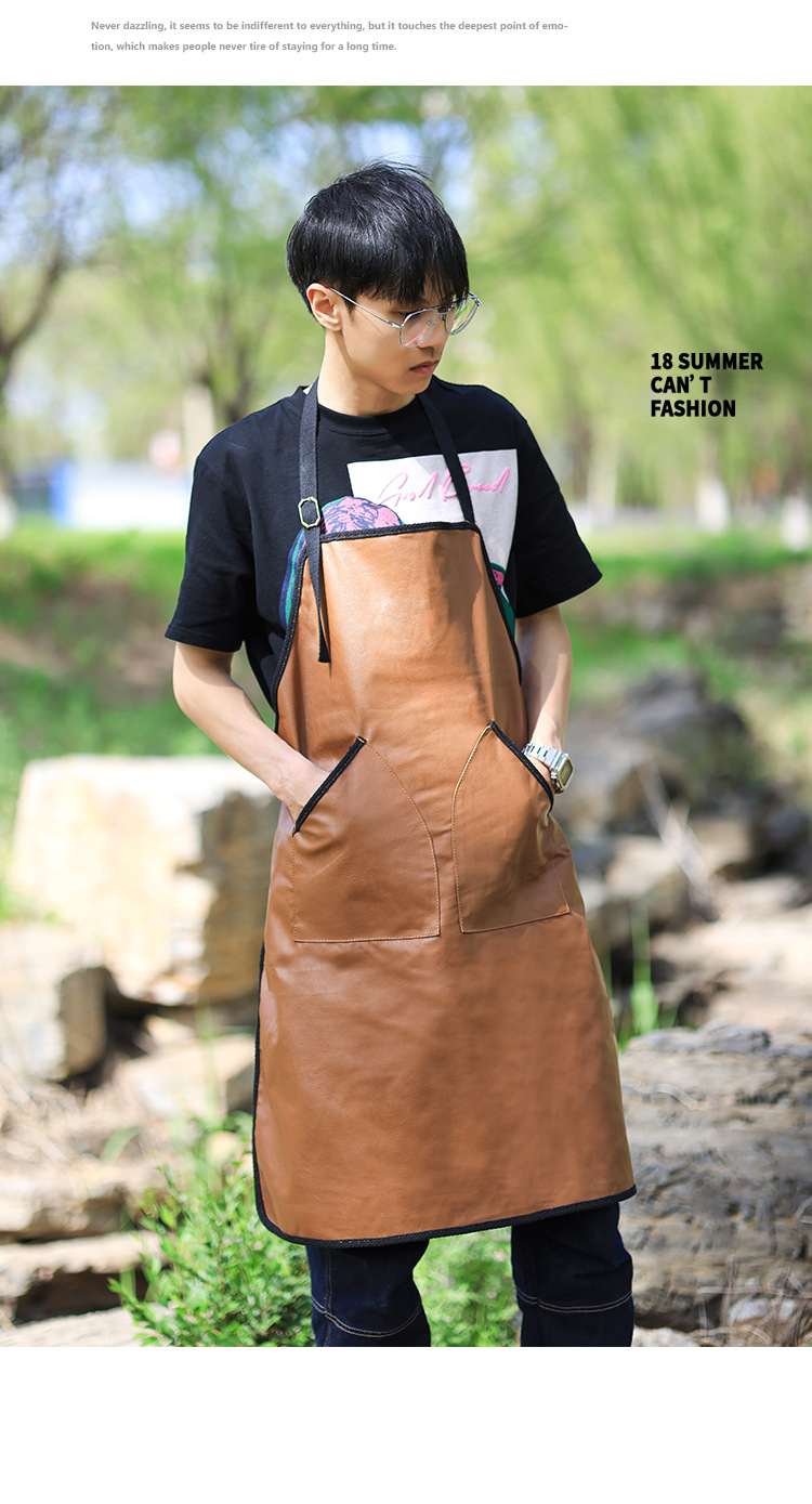 PU 가죽 앞치마 홈 주방 작업 요리 수생 바리 스타 밀크 티 샵 인쇄 로고 인쇄 작업복스토어 가기