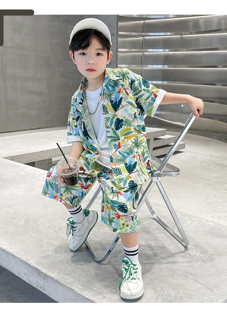 소년 세트 비치 홍콩 스타일 셔츠 큰 어린이 반팔 여름 옷 산야 어린이 하와이 해변 휴가 옷 패션스토어 가기