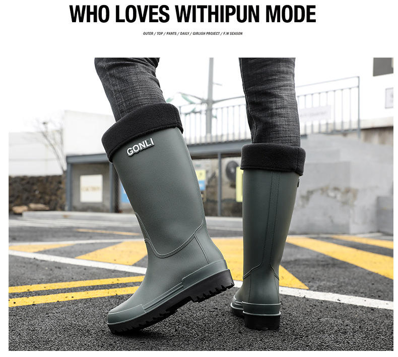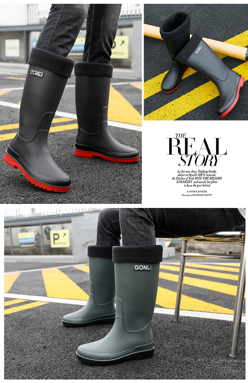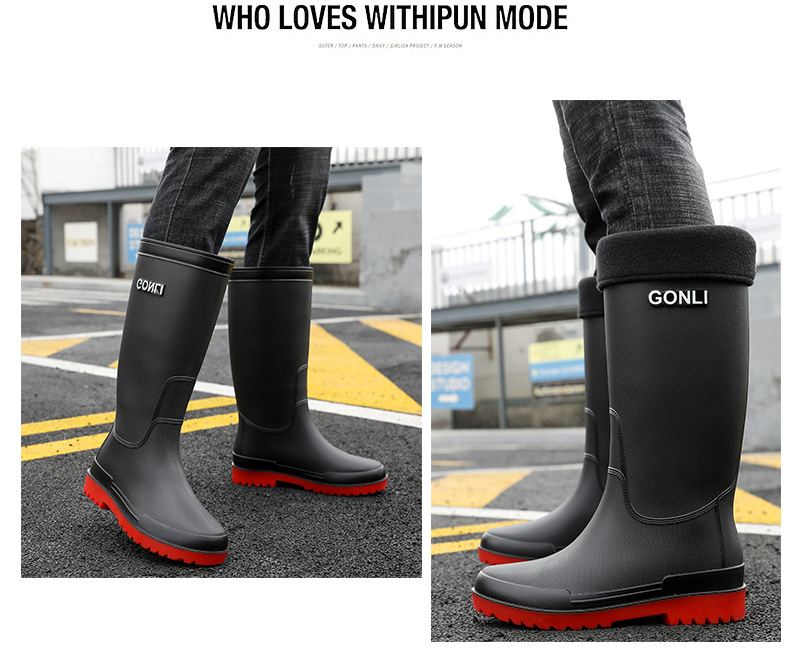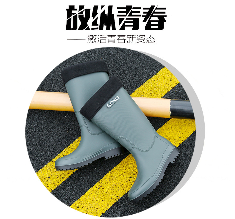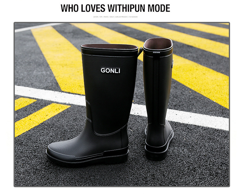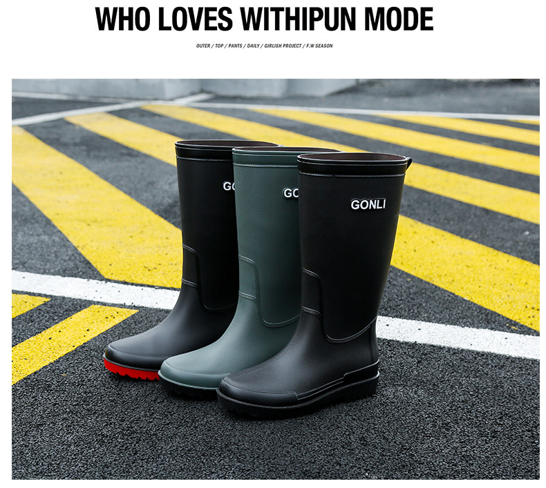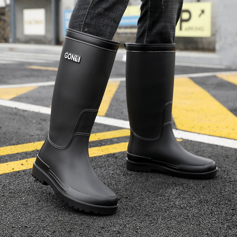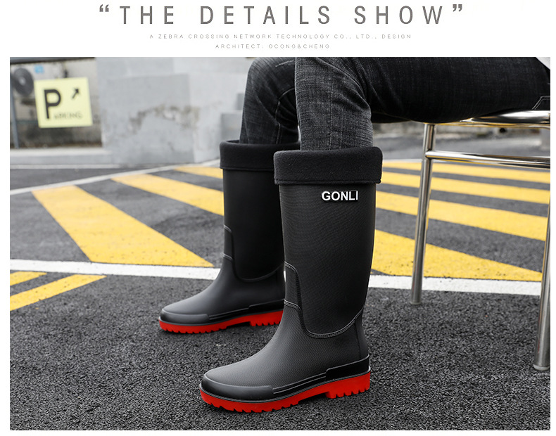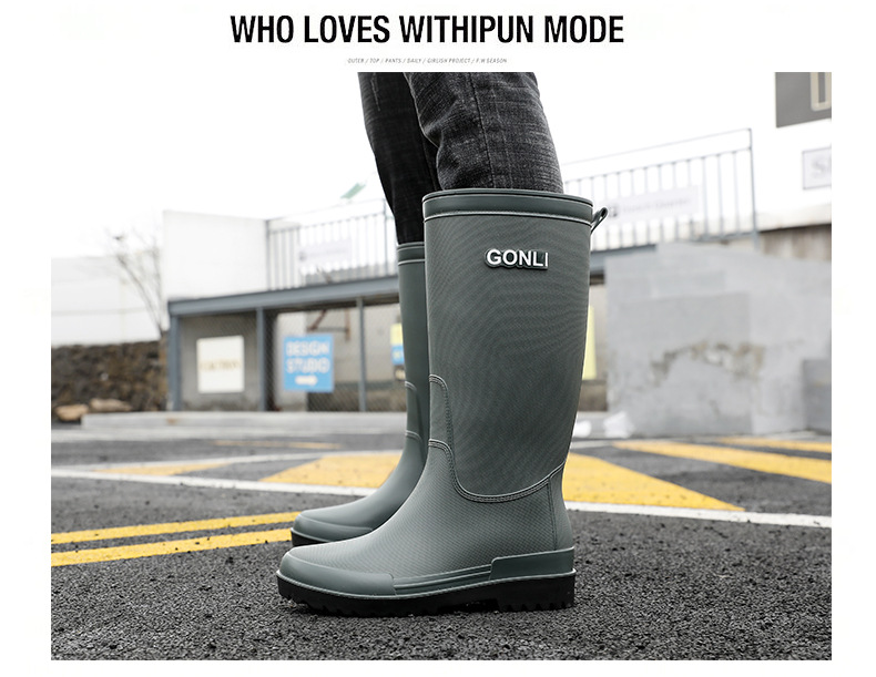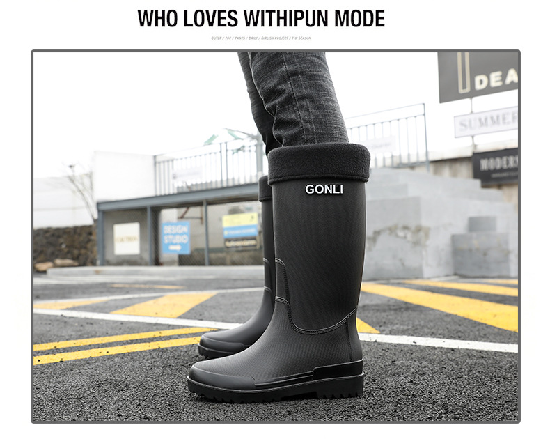 남자의 높은 비 신발 패션 건설 현장을위한 새로운 도착 거들 방수 신발 Meituan 미끄럼 방지 장화 따뜻한 사계절 내마모성 고무 신발