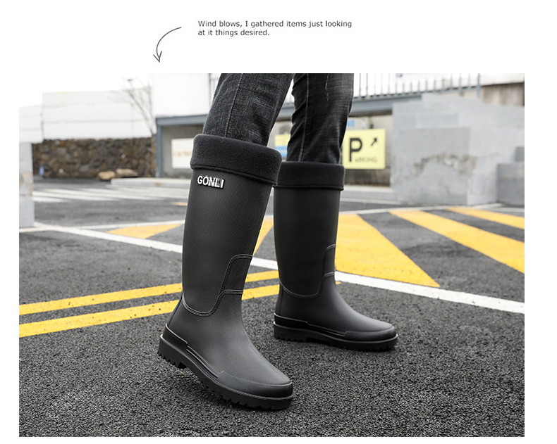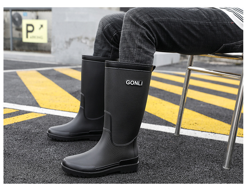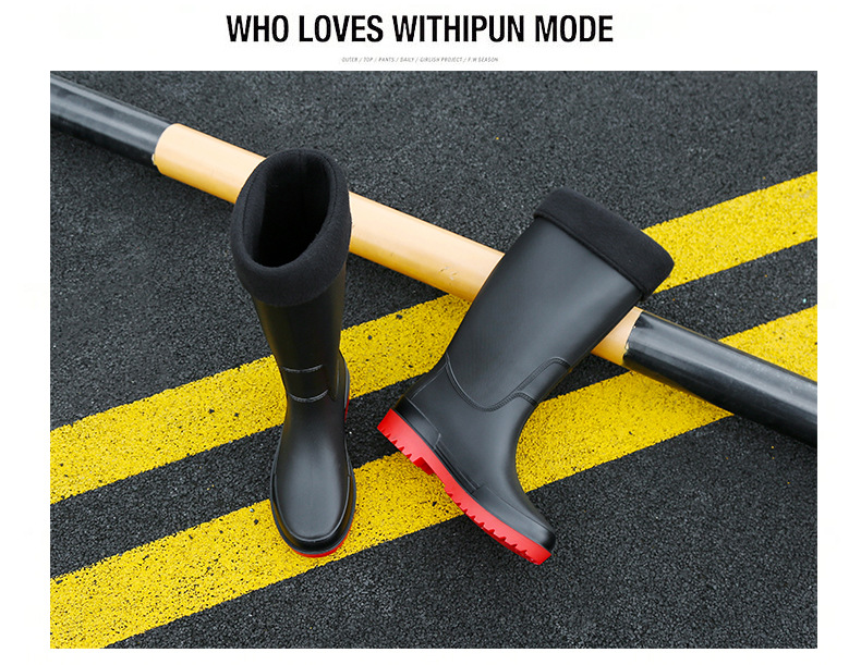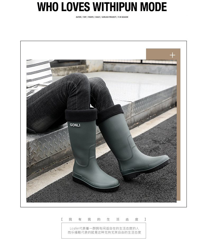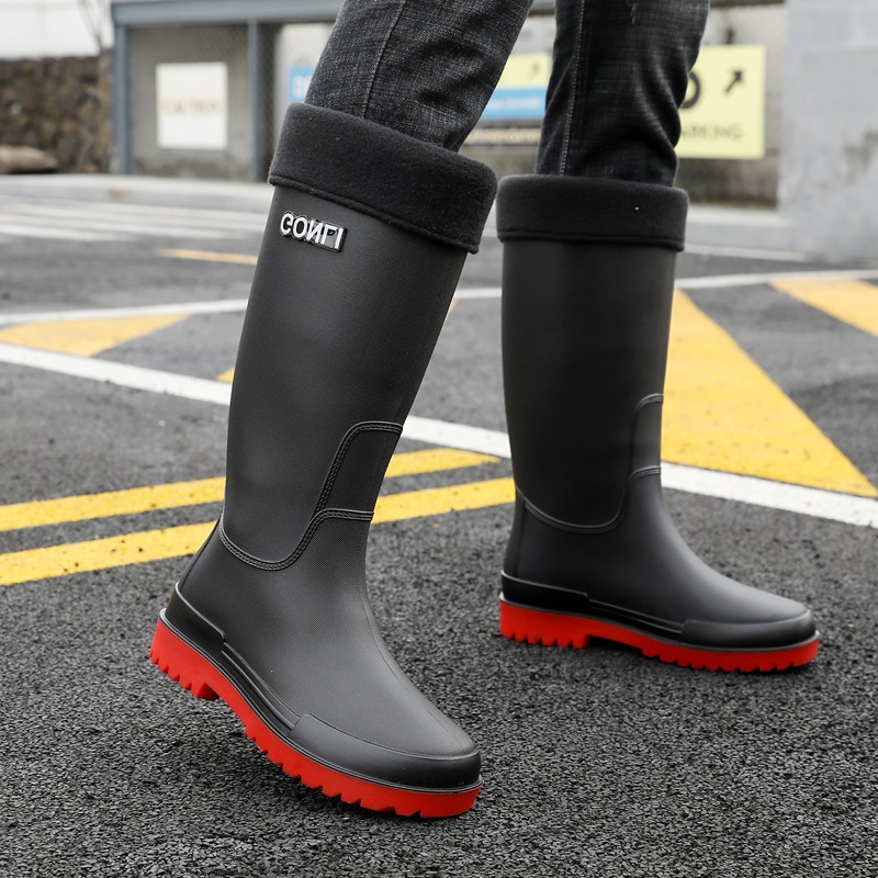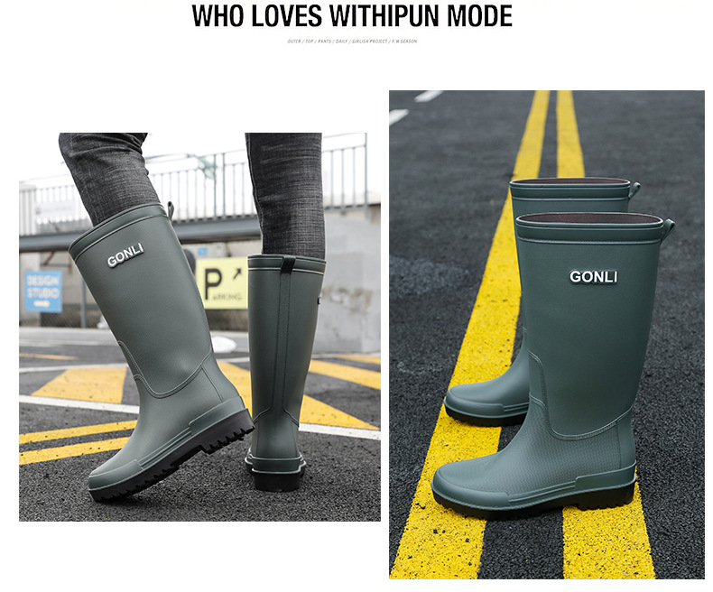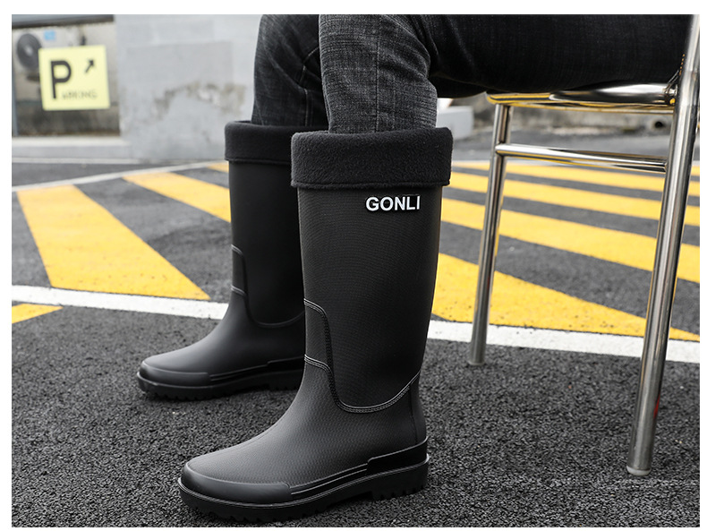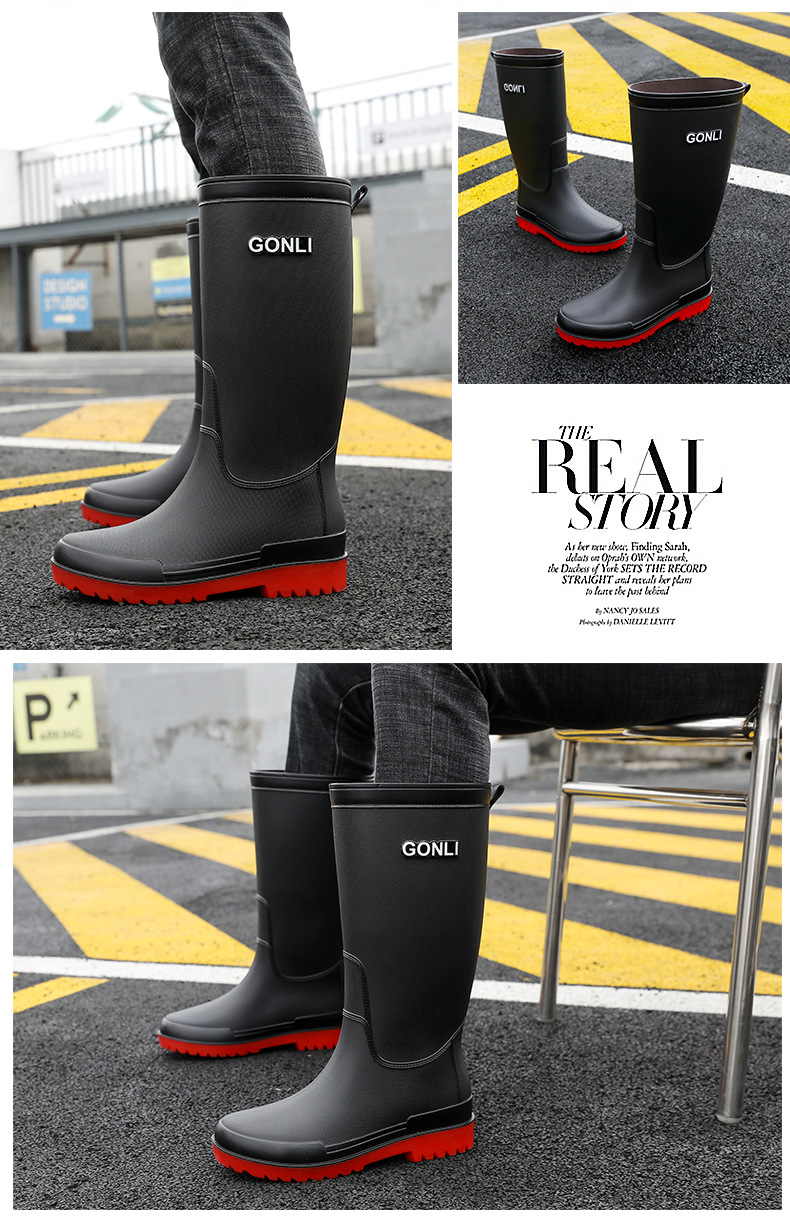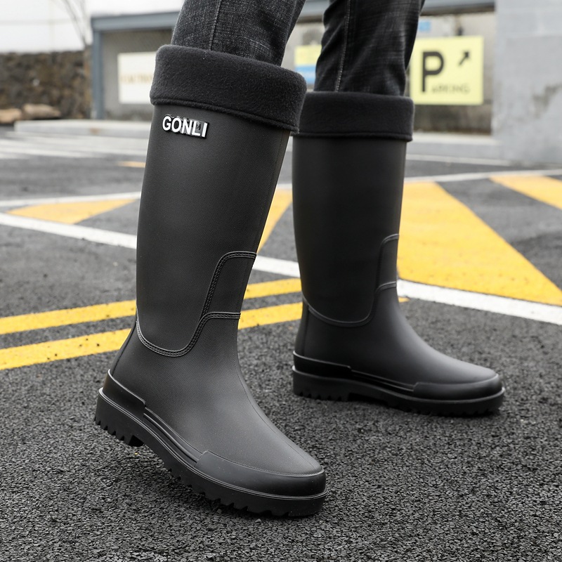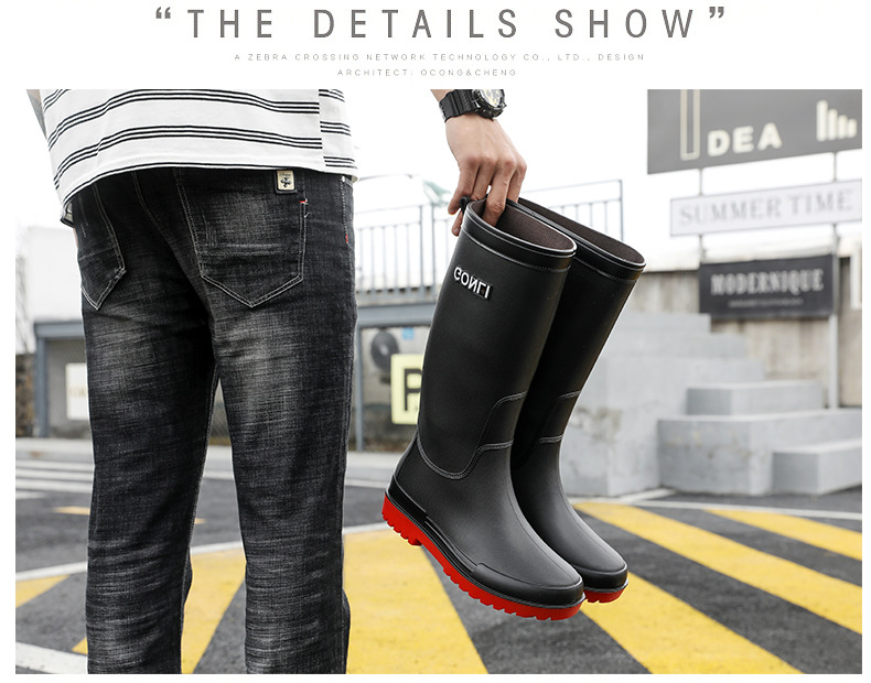 남자의 높은 비 신발 패션 건설 현장을위한 새로운 도착 거들 방수 신발 Meituan 미끄럼 방지 장화 따뜻한 사계절 내마모성 고무 신발