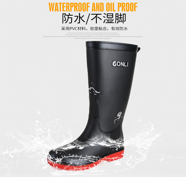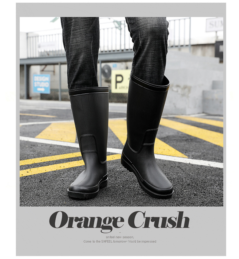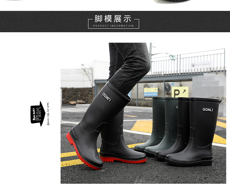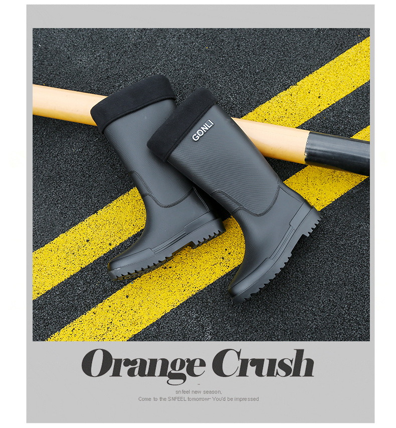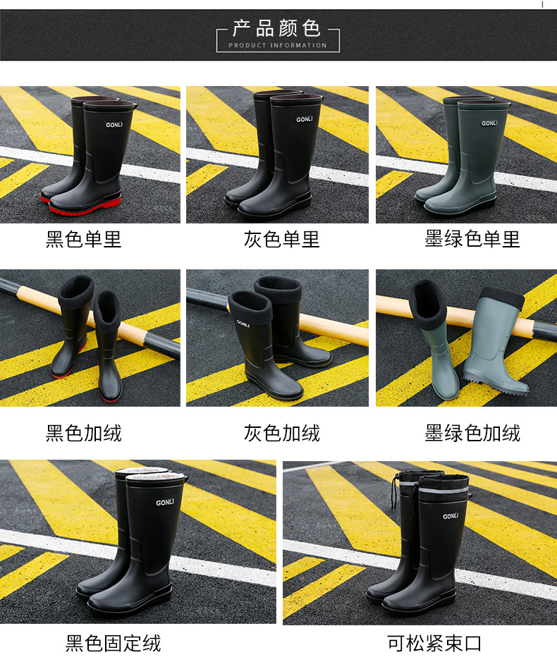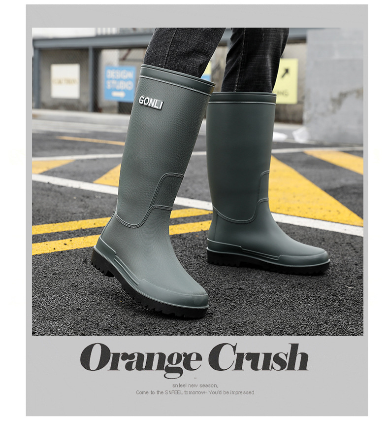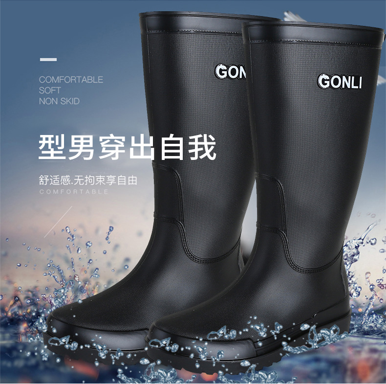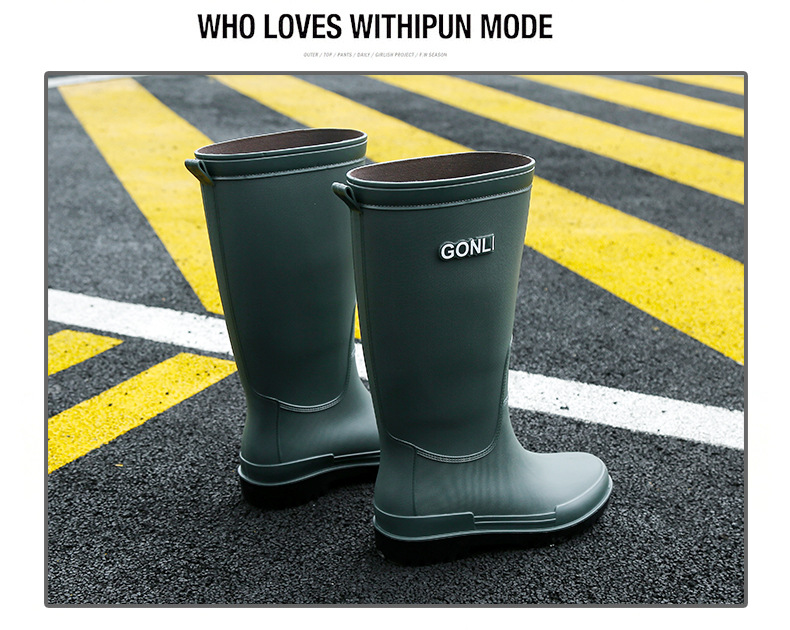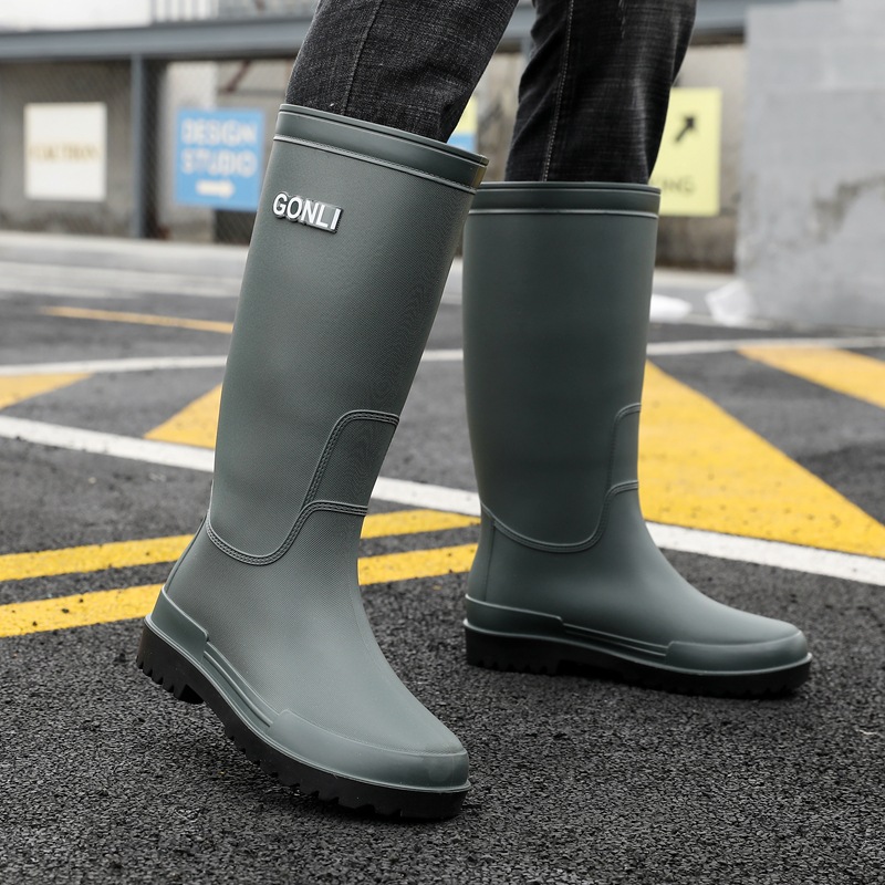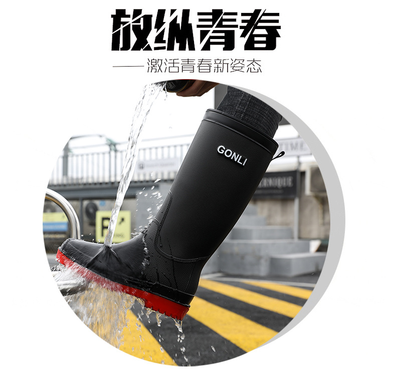 남자의 높은 비 신발 패션 건설 현장을위한 새로운 도착 거들 방수 신발 Meituan 미끄럼 방지 장화 따뜻한 사계절 내마모성 고무 신발