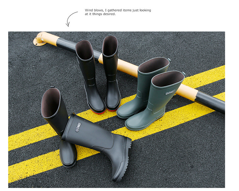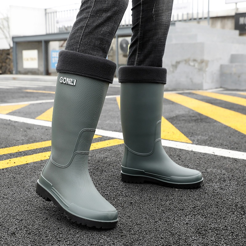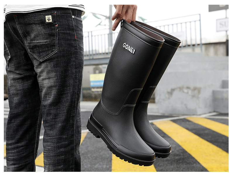 남자의 높은 비 신발 패션 건설 현장을위한 새로운 도착 거들 방수 신발 Meituan 미끄럼 방지 장화 따뜻한 사계절 내마모성 고무 신발스토어 가기