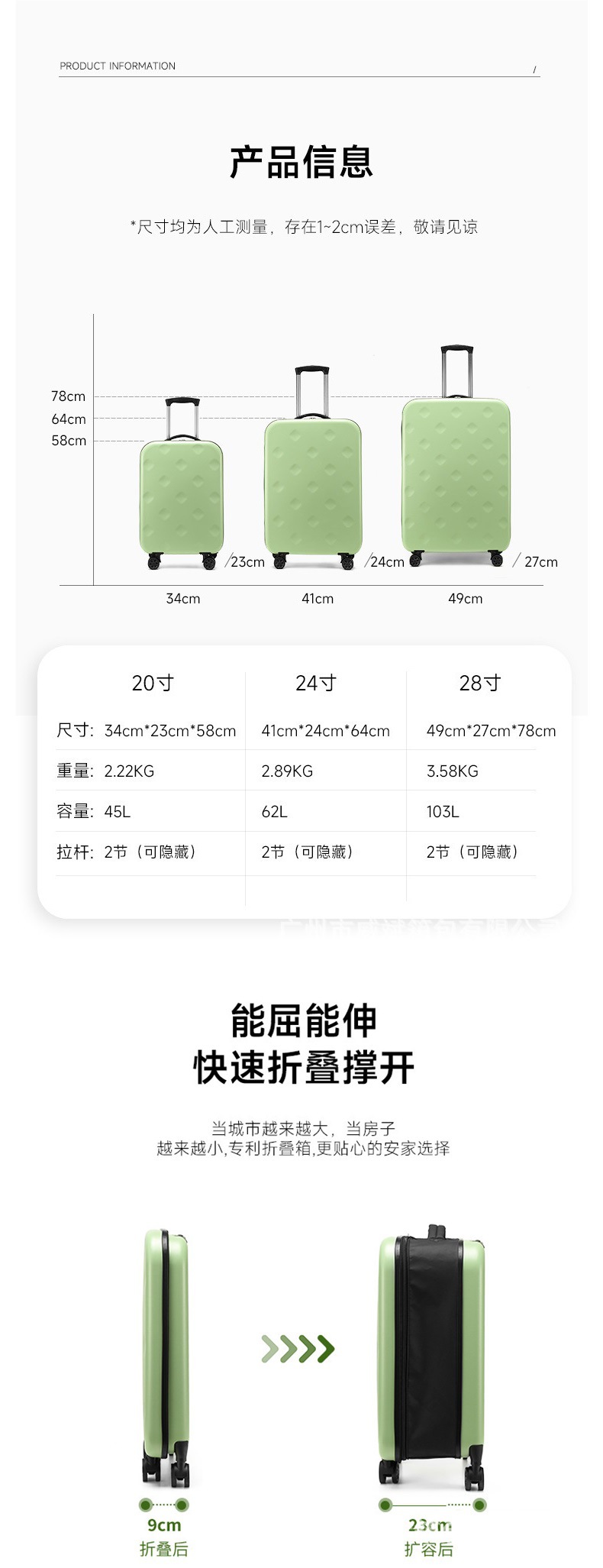 뜨거운 판매 국경 간 새로운 접이식 트롤리 케이스 구멍 유니버설 휠 트롤리 케이스 휴대용 보관 수하물 탑승 케이스