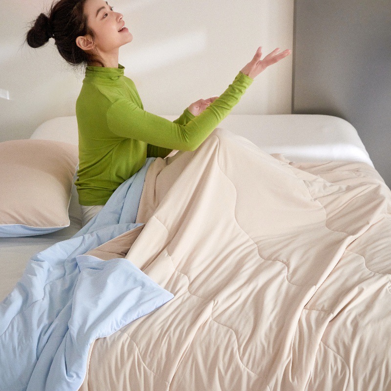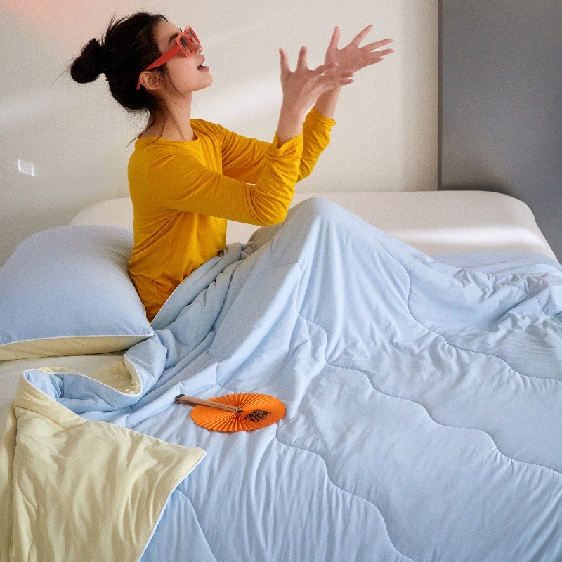 解锁降温超能力,将瑜伽服面料做成夏被,轻薄爽滑,吸湿透气。
