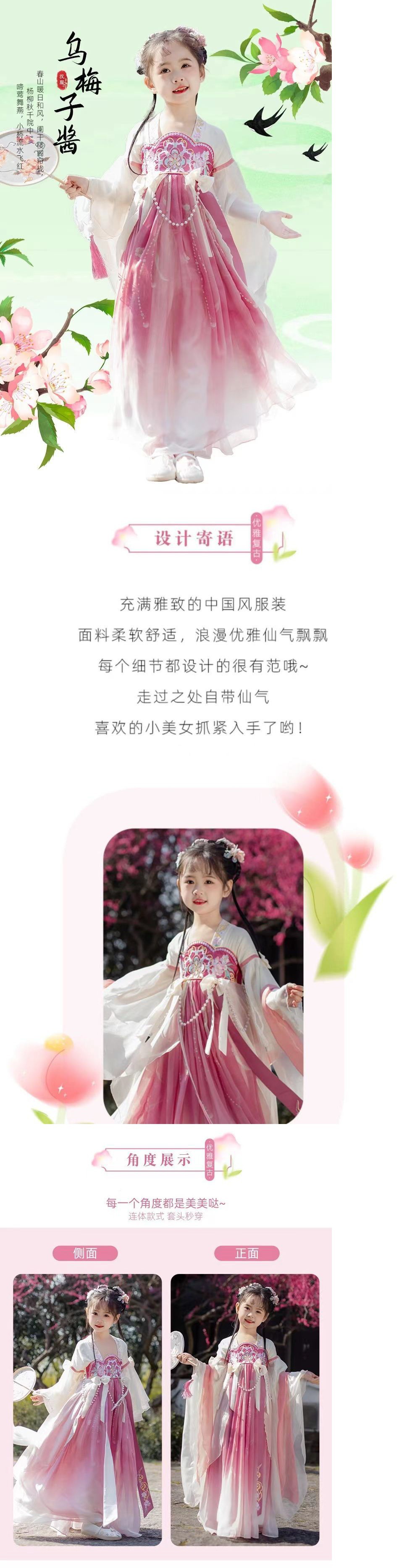 개선 Hanfu 소녀의 봄과 가을 새로운 도착 골동품 원피스 여름 소녀의 당나라 세트 어린이 슈퍼 요정 고대 원피스 여름 스타일스토어 가기