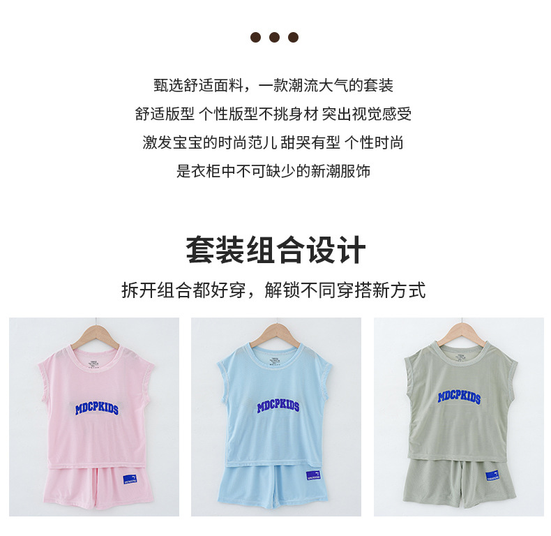 어린이 아이스 실크 민소매 세트 아기 큰 어린이 여름 얇은 중공 메쉬 뼈없는 반바지 2 종 도매스토어 가기