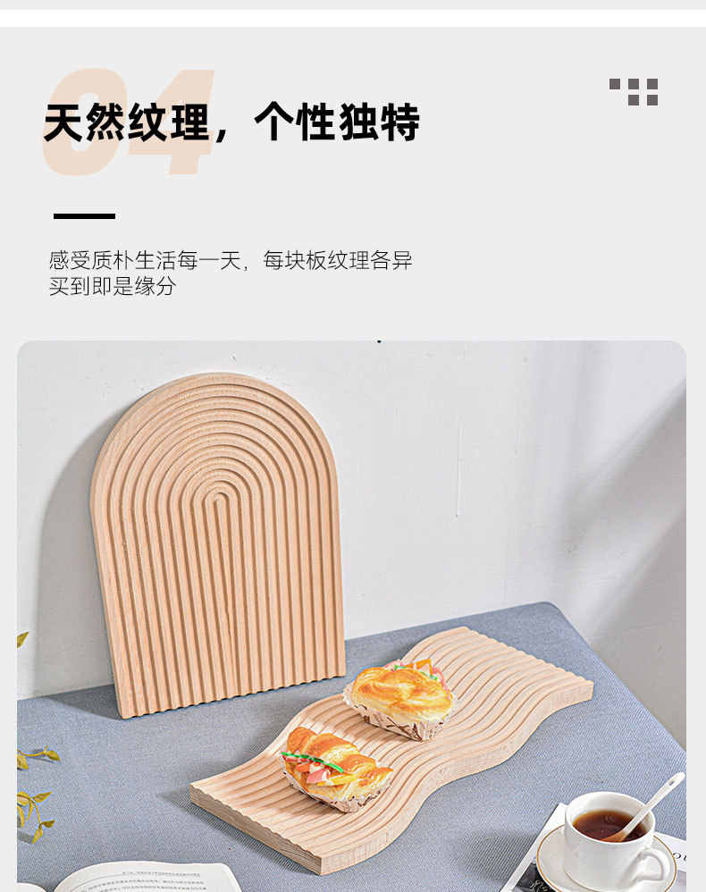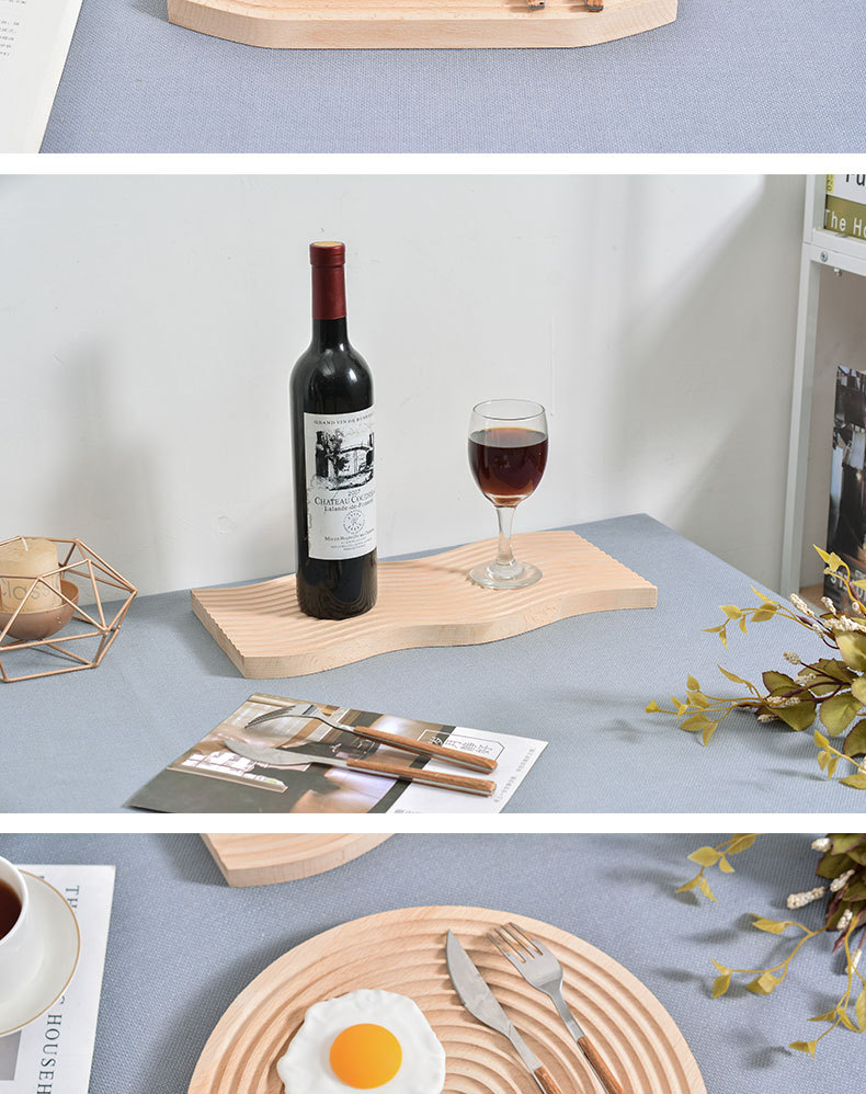 창의적인 불규칙한 모양의 야외 바베큐 나무 트레이 물결무늬 애프터눈 티 과일 트레이 원목 디저트 차 트레이