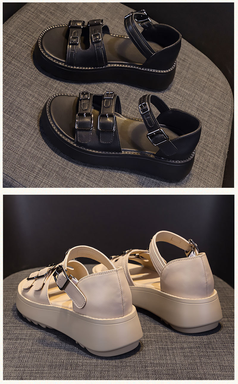 여성을위한 인터넷 연예인 샌들 여름 새로운 두꺼운 밑창 복고풍 캐주얼 중공 패션 다목적 소 가죽 로마 샌들
