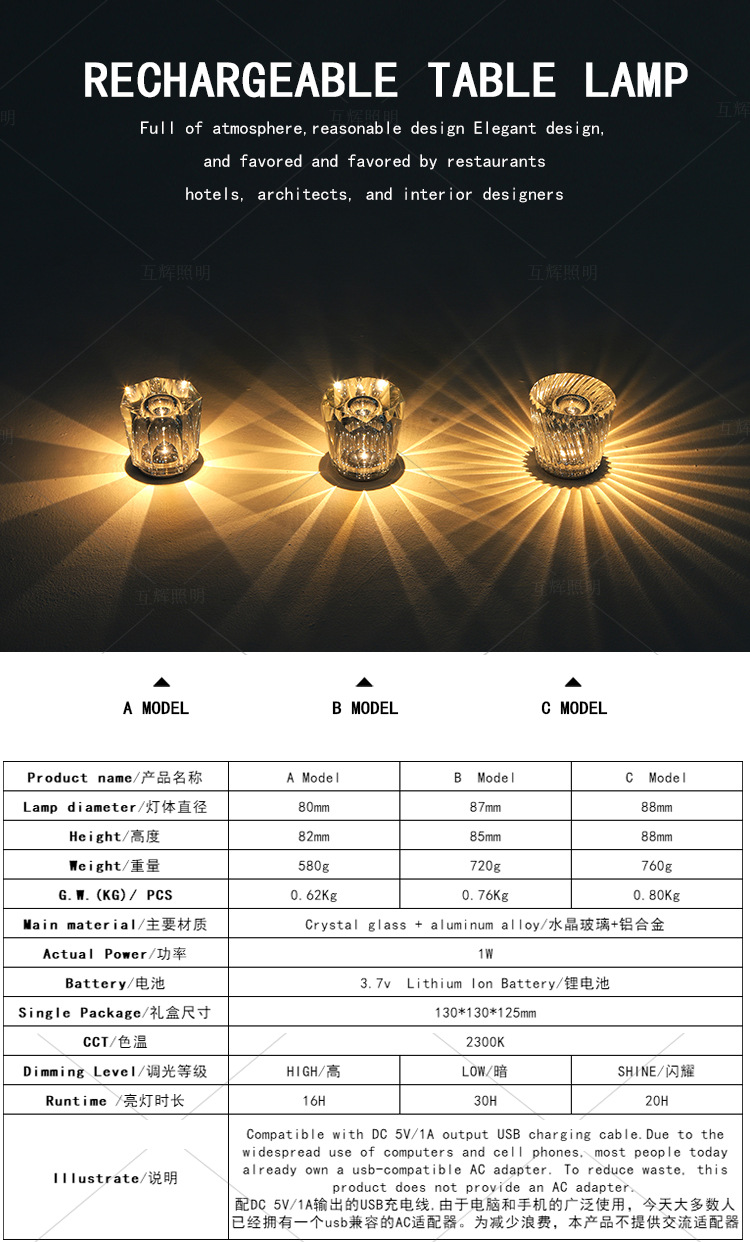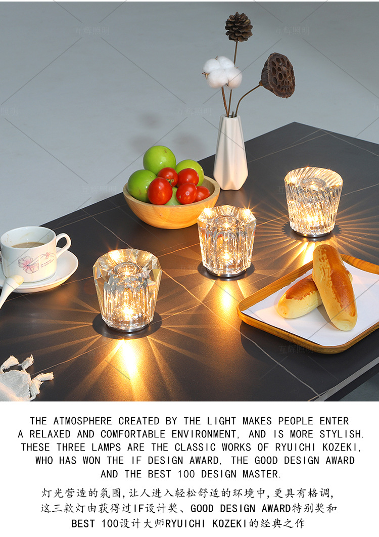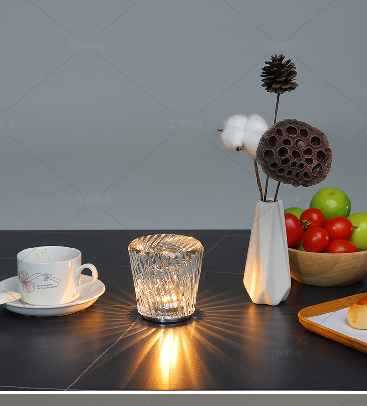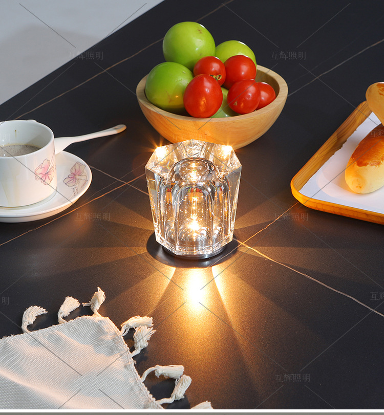 크리스탈 분위기 램프 충전 LED 소품 도로 가이드 캠핑 바 카페 장식 가벼운 고급 침대 옆 테이블 램프