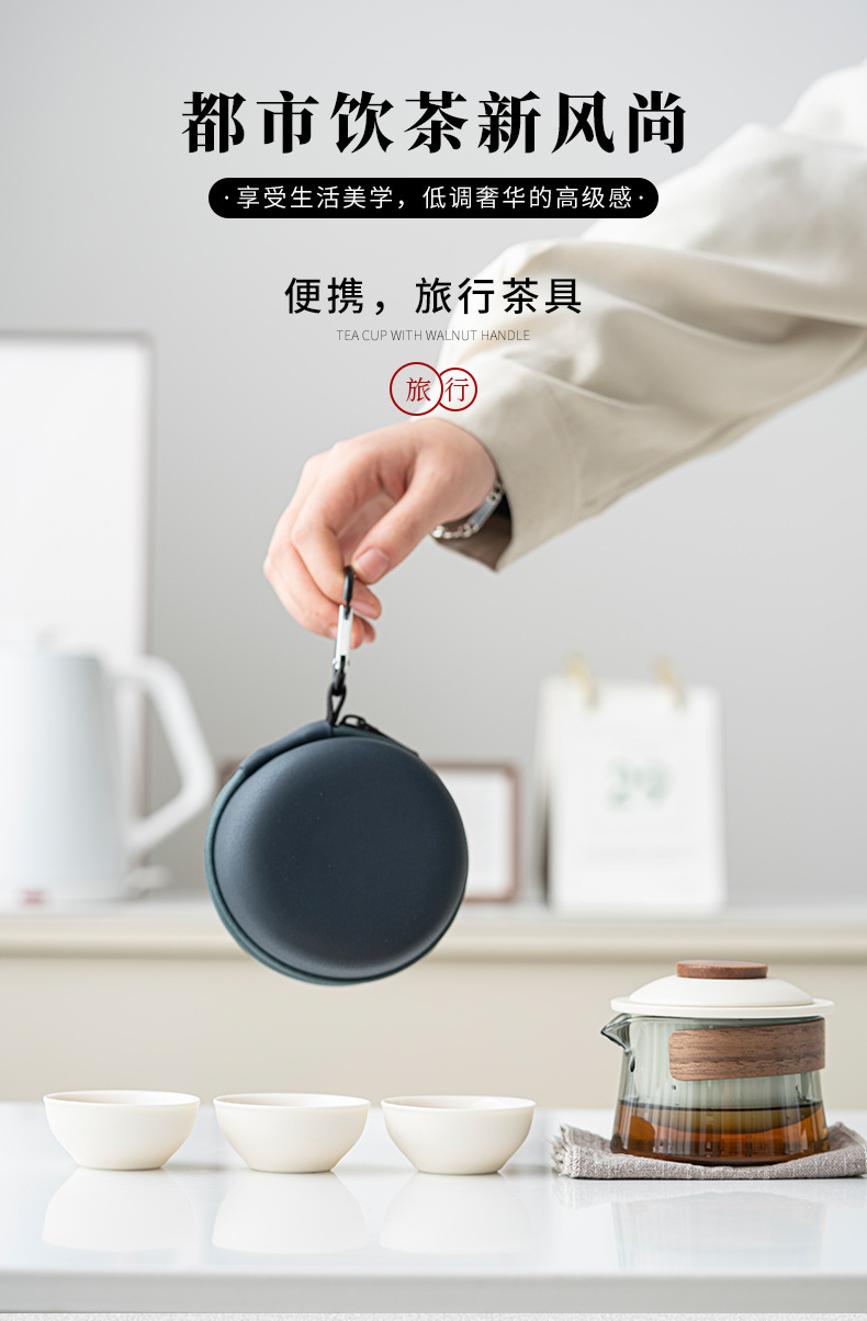 여행 차 세트 세트 야외 휴대용 빠른 손님 1 냄비 3 컵 세라믹 유리 보관 가방 사무실 손 선물 제형스토어 가기