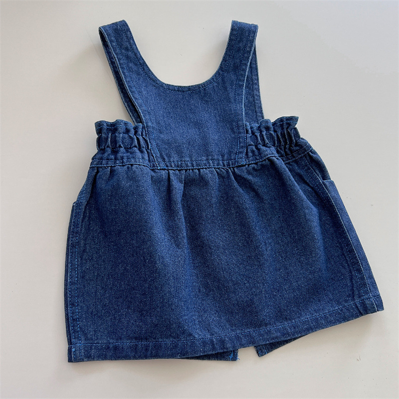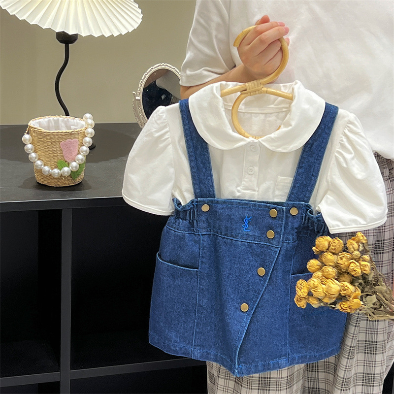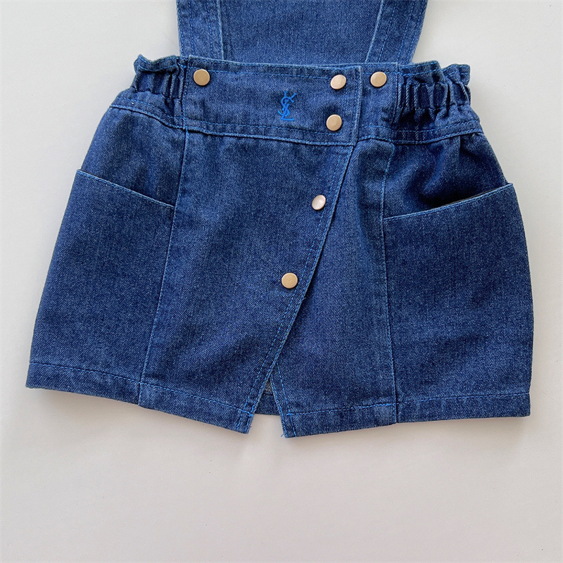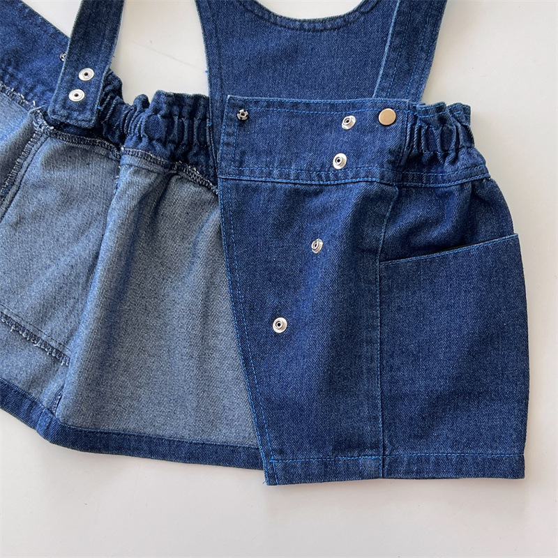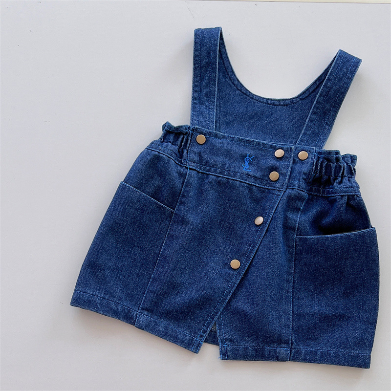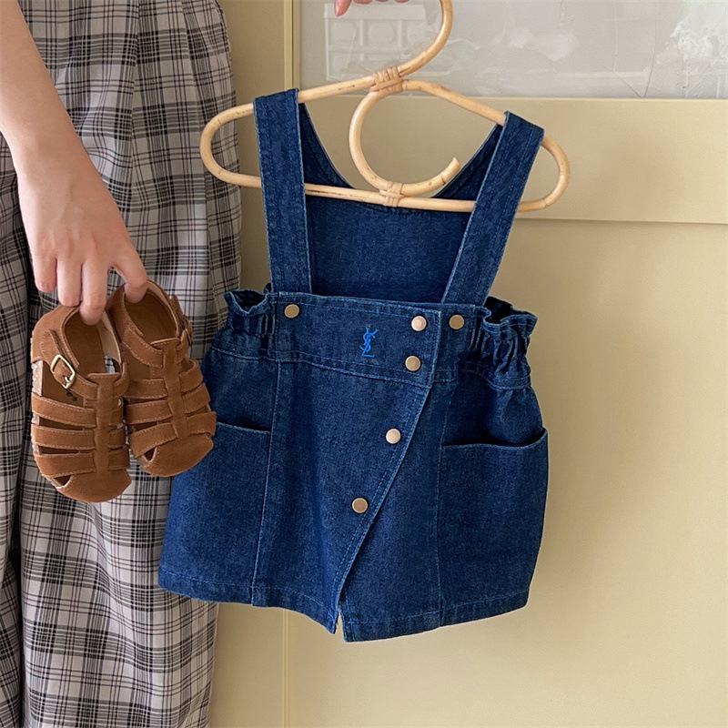 2023 여름 새 여자 장난 귀여운 데님 스트랩 스커트 어린이 다목적 편안한 단색 스커트