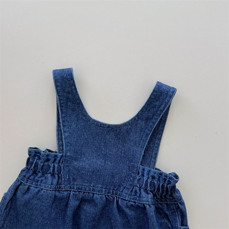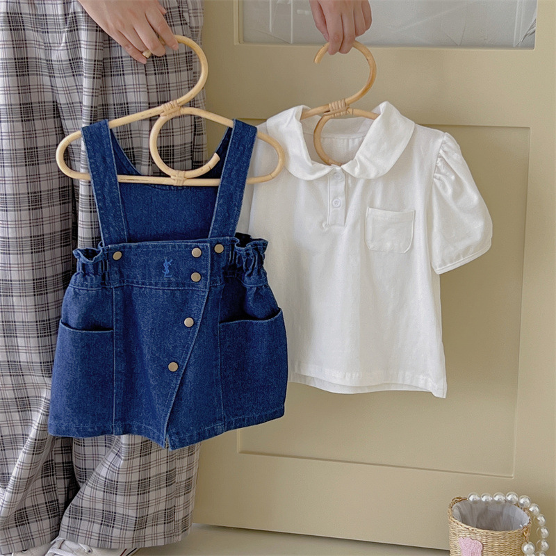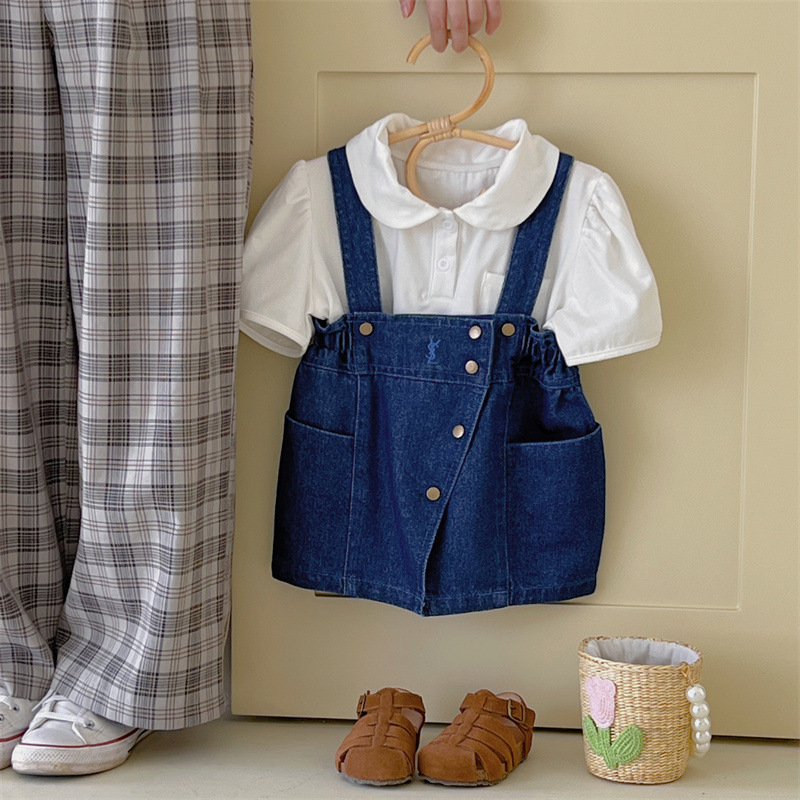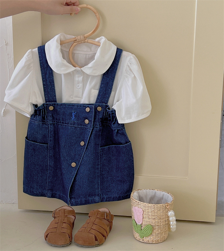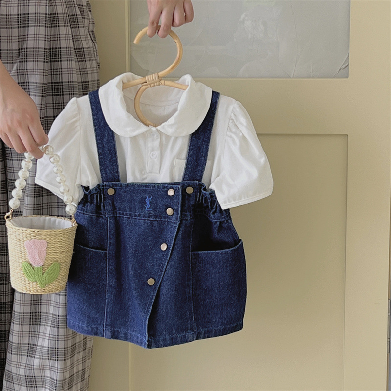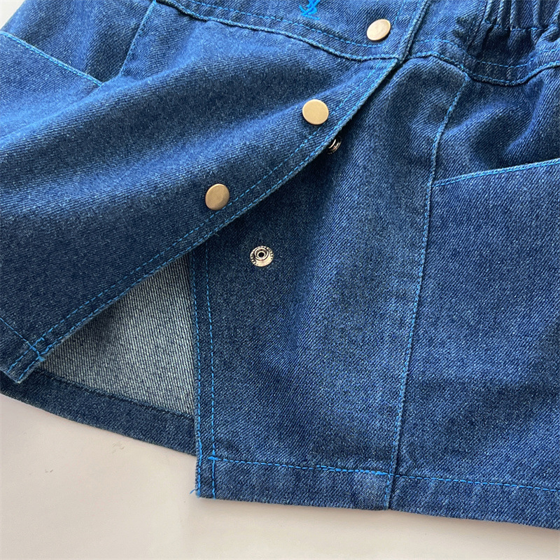 2023 여름 새 여자 장난 귀여운 데님 스트랩 스커트 어린이 다목적 편안한 단색 스커트