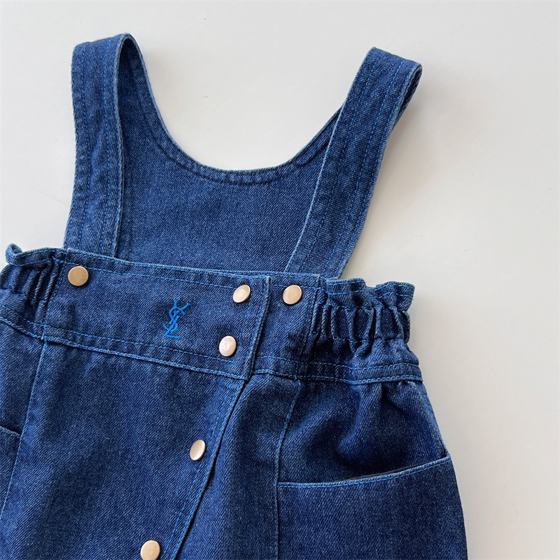 여름 신상 여아용 귀엽고 깜찍한 데님 멜빵 스커트, 유아 및 어린이용 다용도 편안한 단색 스커트