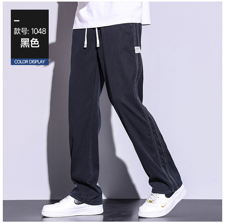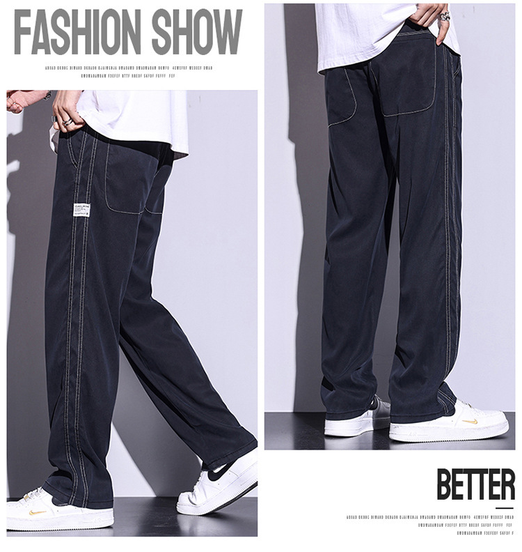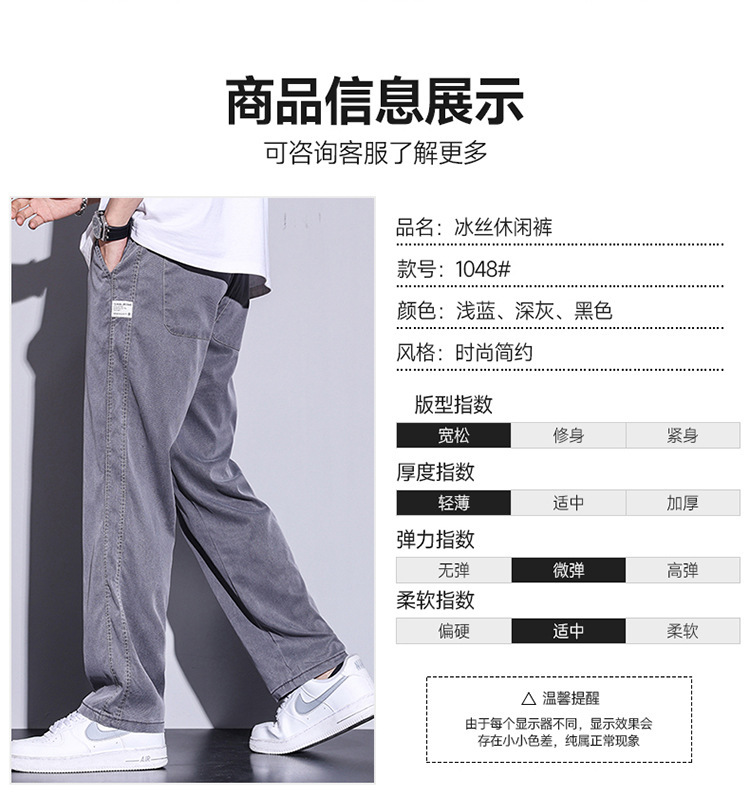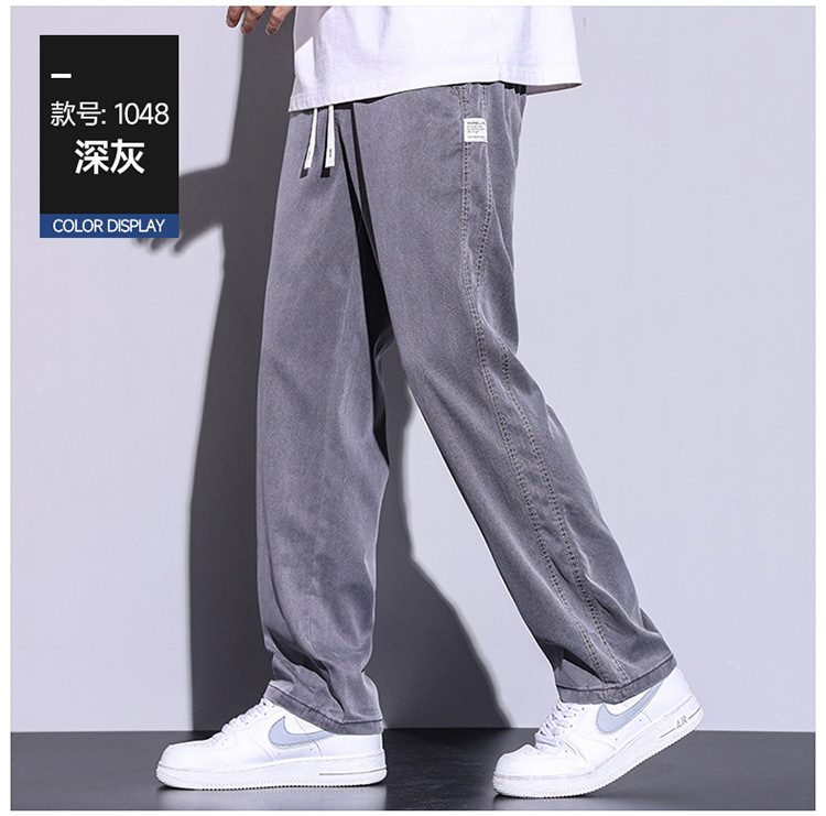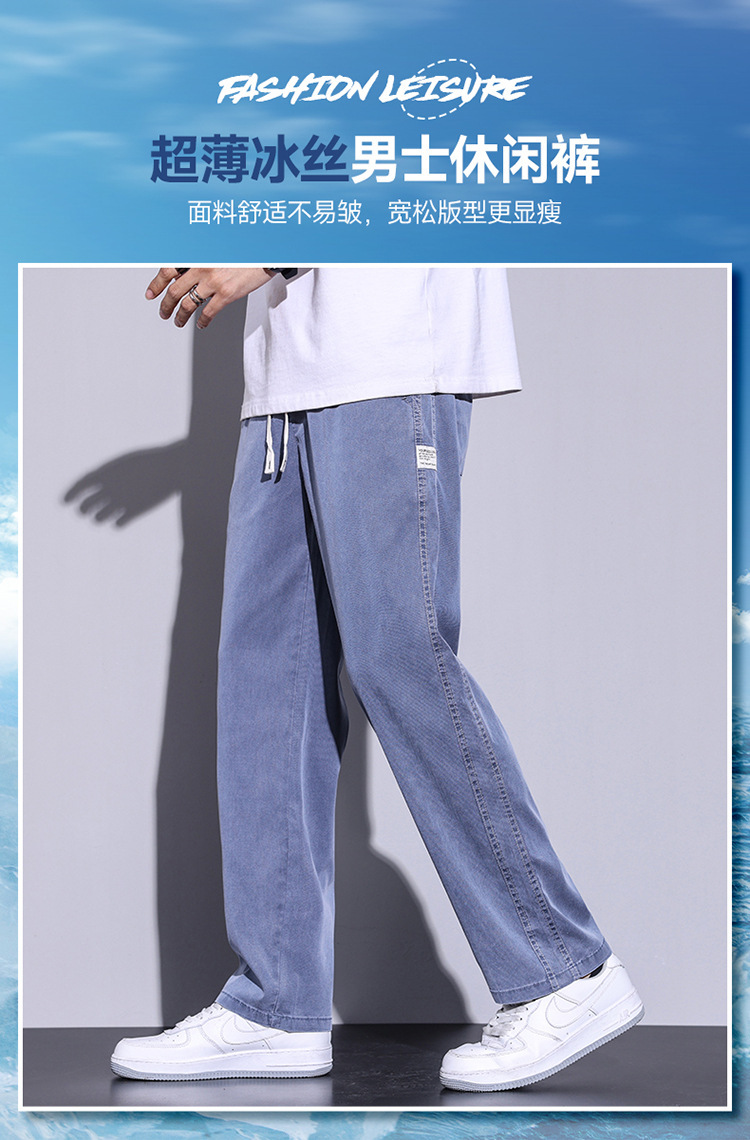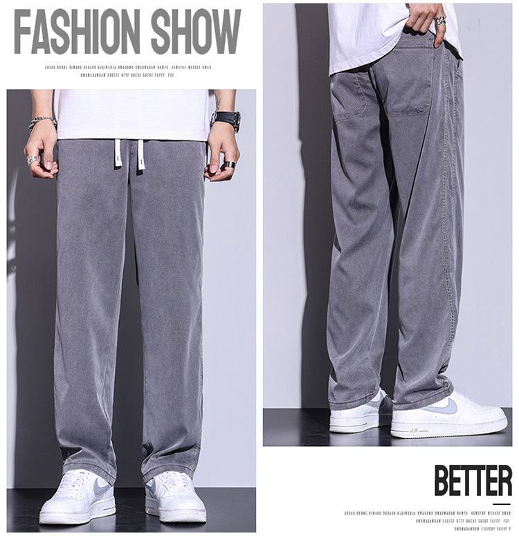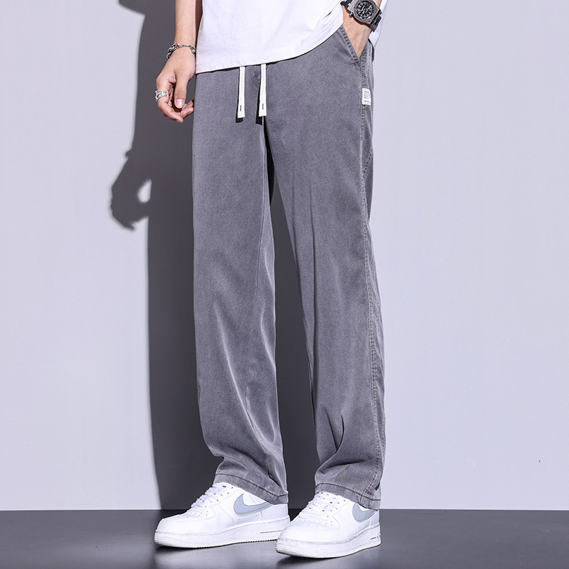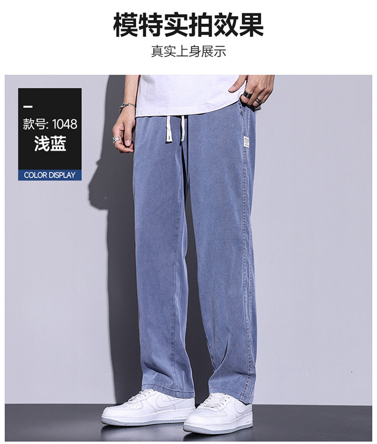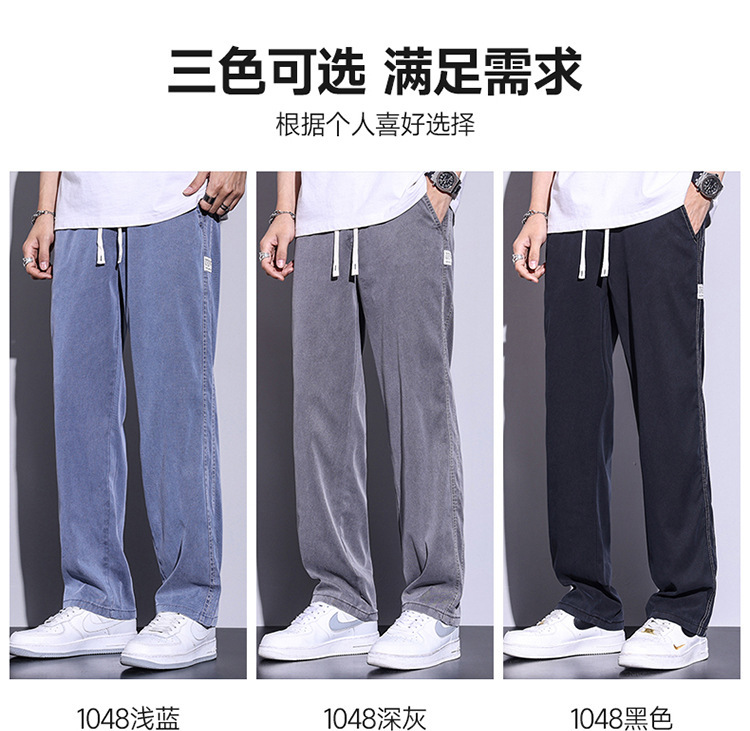 텐셀 청바지 남성용 여름 얇은 아이스 실크 느슨한 스트레이트 캐주얼 와이드 레그 팬츠 남성용 트렌디 브랜드 롱 팬츠스토어 가기