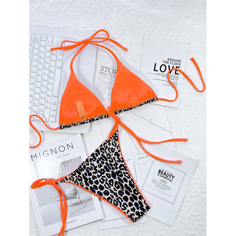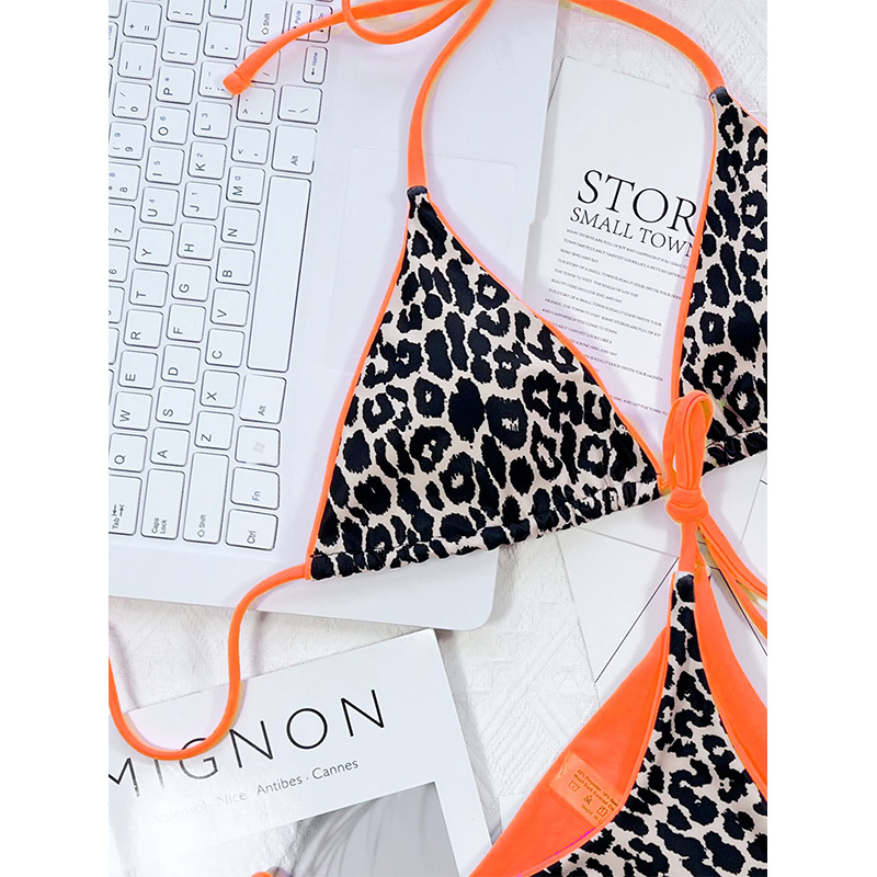 유럽과 미국 크로스 보더 2023 새로운 여성용 스플릿 비키니 레오파드 무늬 여러 가지 빛깔의 교수형 목 레이스 업 비치 수영복 여성용스토어 가기