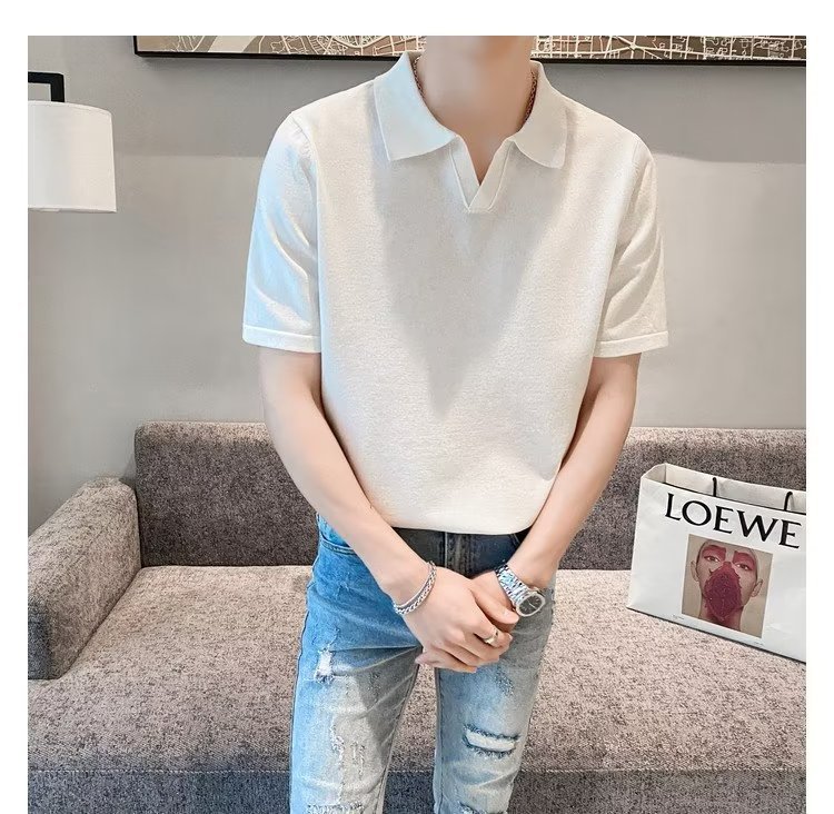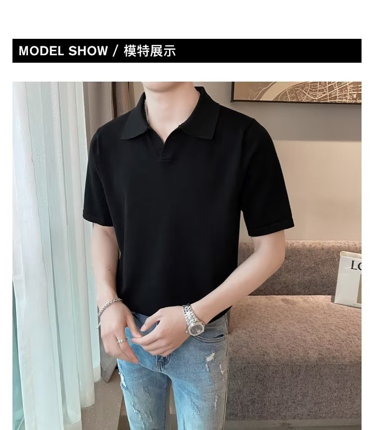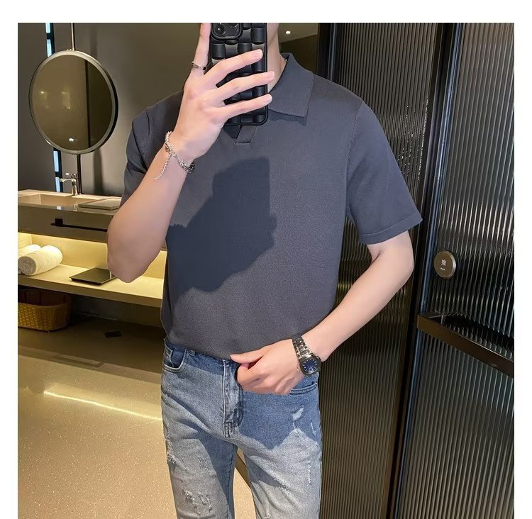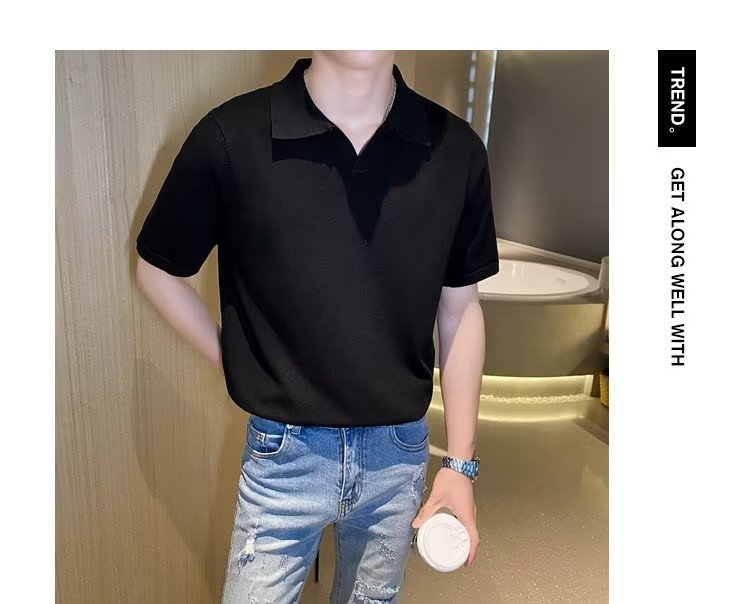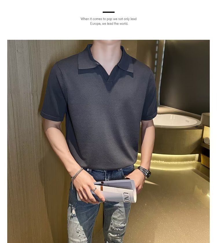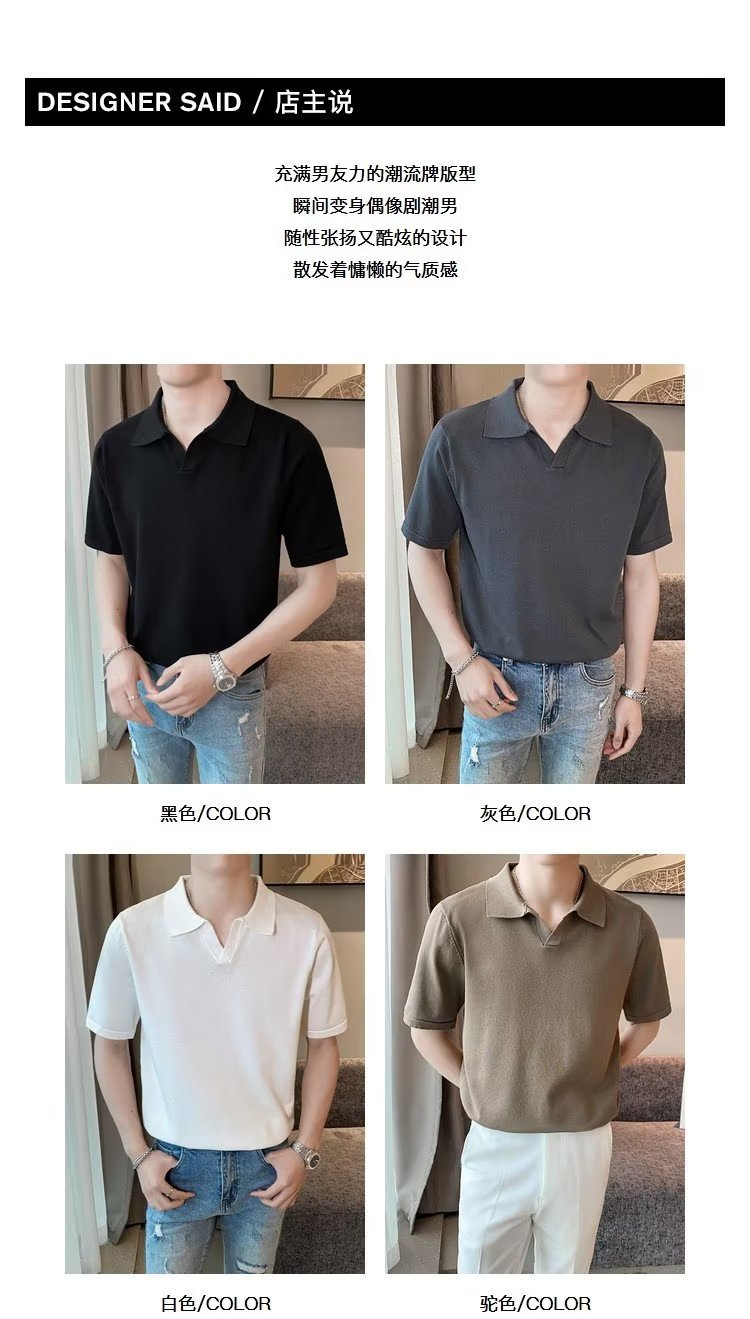 남성용 반팔 티셔츠 한국 유행 여름 새 남성용 심플 라펠 폴로 셔츠 반팔 탑스토어 가기