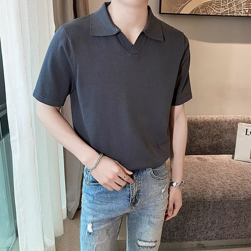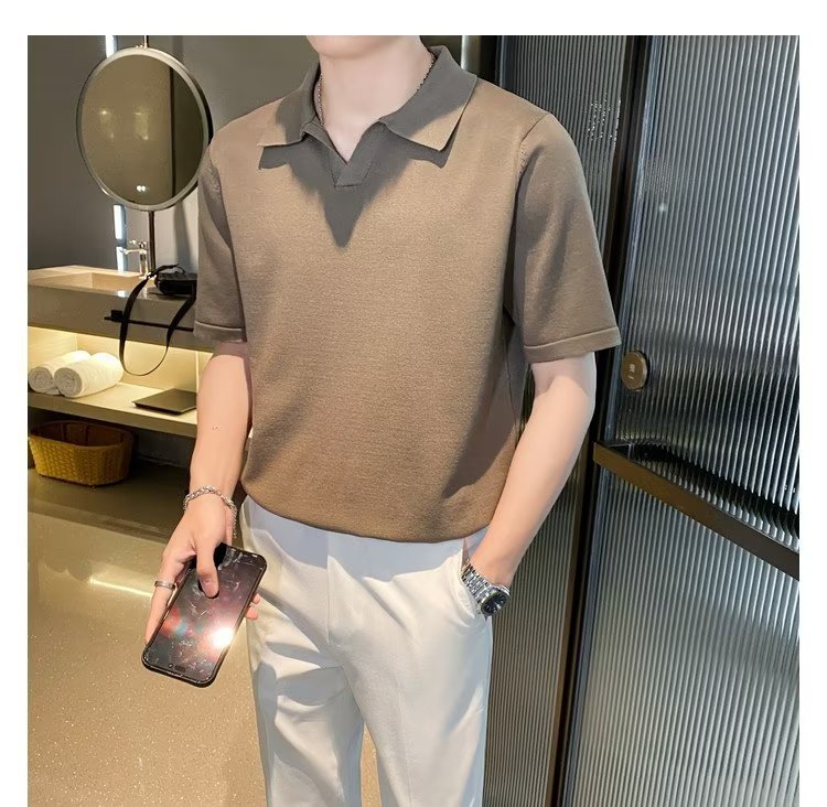 남성용 반팔 티셔츠 한국 유행 여름 새 남성용 심플 라펠 폴로 셔츠 반팔 탑