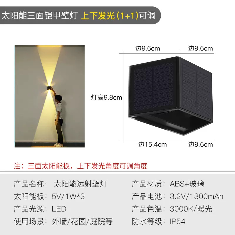 태양 벽 세척기 램프 야외 빌라 안뜰 벽 램프 발코니 정원 벽 조명 램프 야외 태양 방 벽 램프