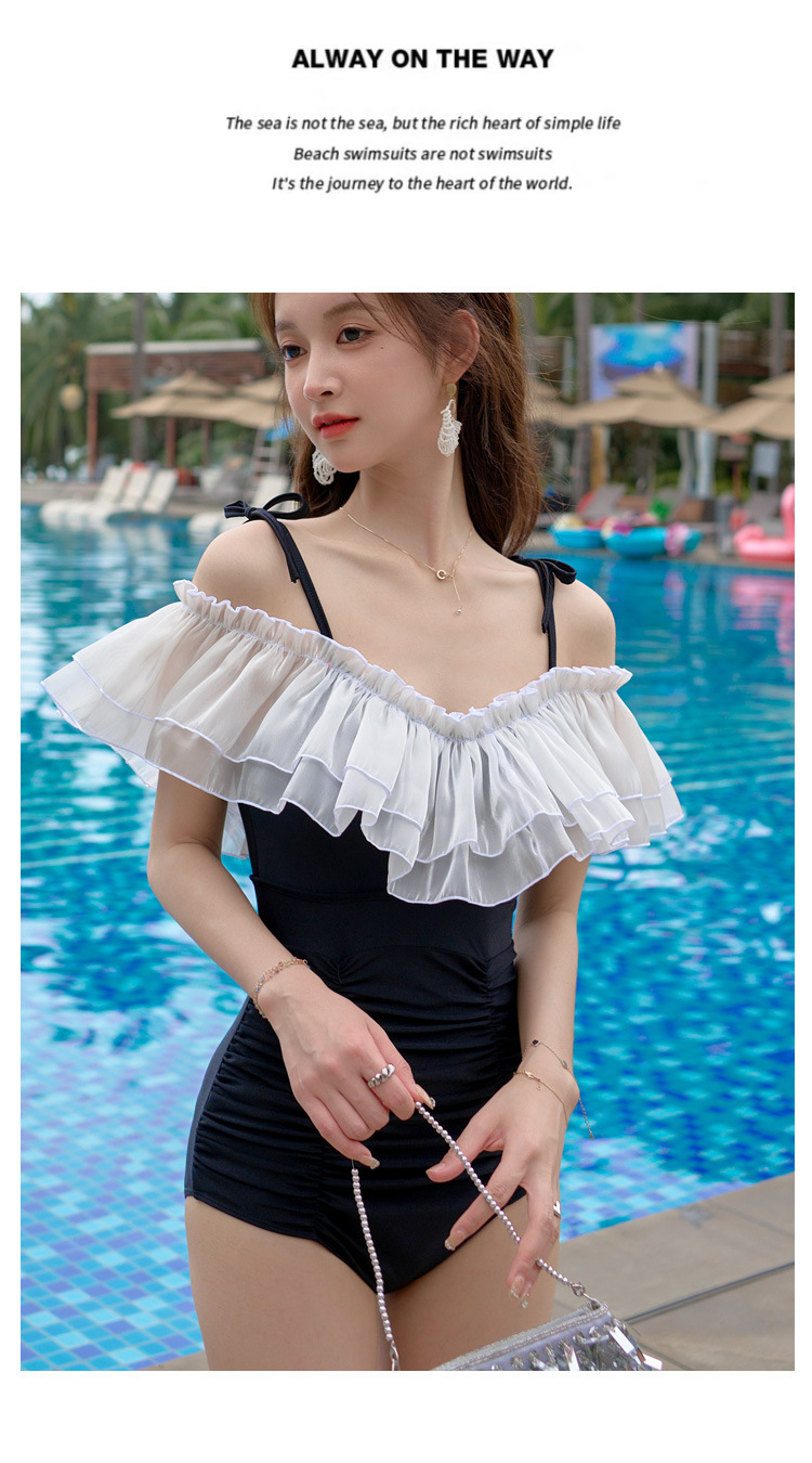 부모-자식 수영복 어머니-딸 원피스 배꼽 덮기 슬림 수영복 한국 여름 새로운 스타일 중소 규모 어린이 휴가 온천