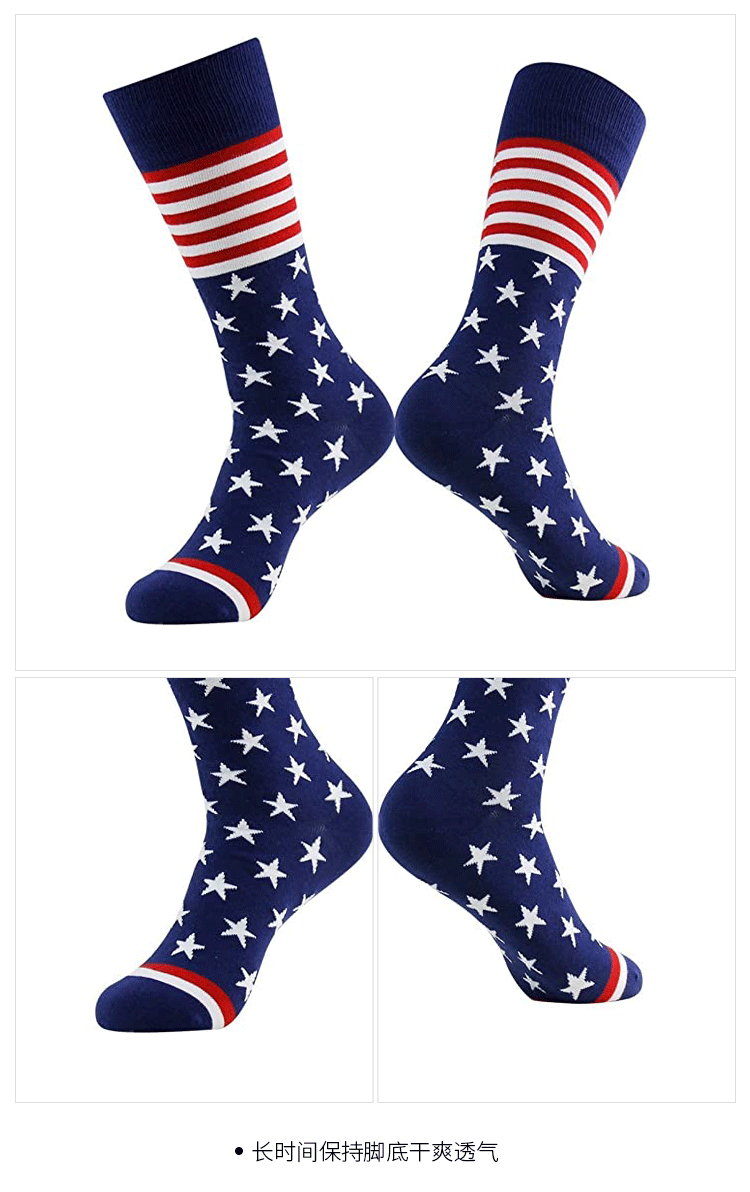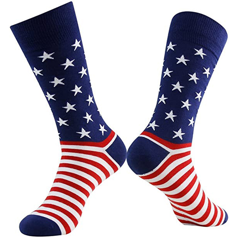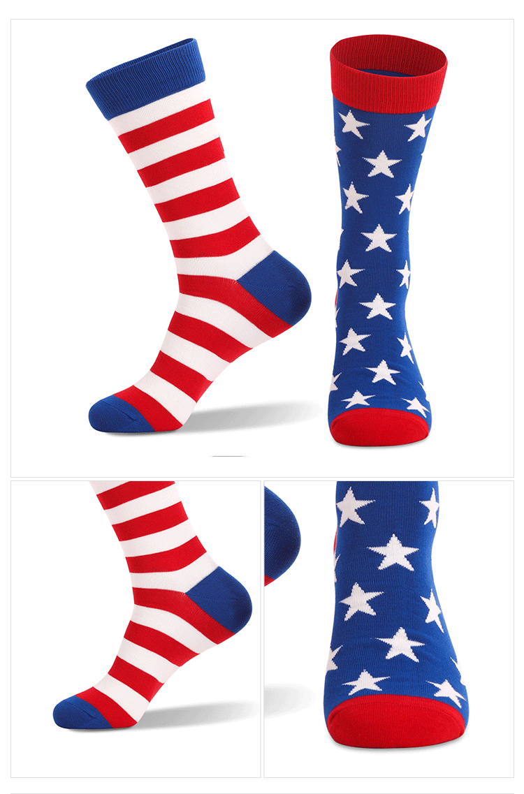 남성용 국경을 넘는 양말, 미국 독립기념일 깃발 양말, 배색 스트라이프 중목 양말, 남성용 스포츠 양말, 종아리 양말