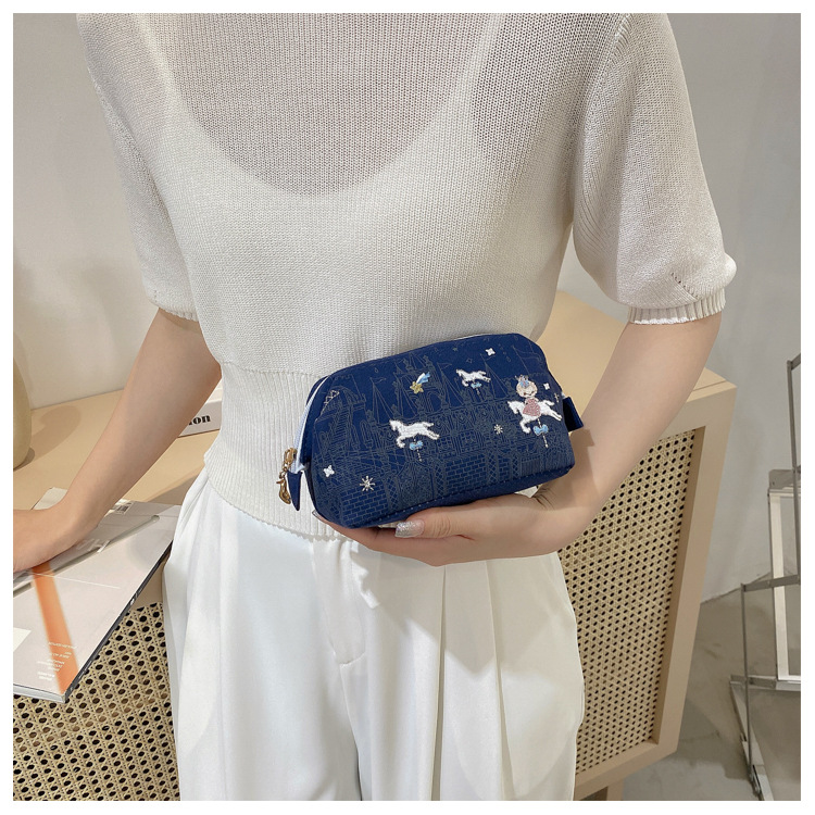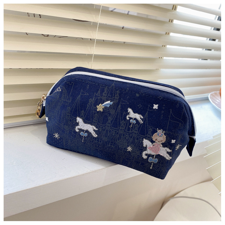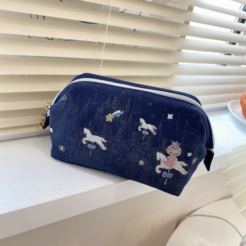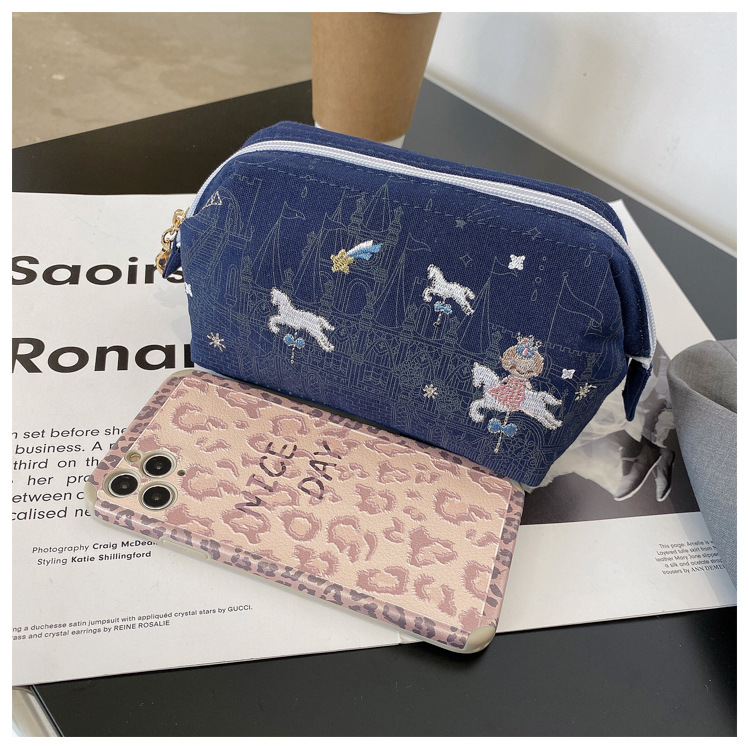 한국 스타일 블랙 립스틱 자수 수납 가방 동전 지갑 휴대용 대용량 여행용 수납 가방 휴대용 화장품 가방