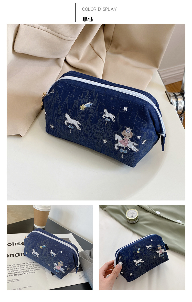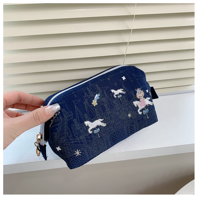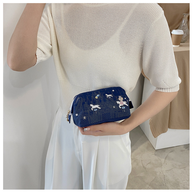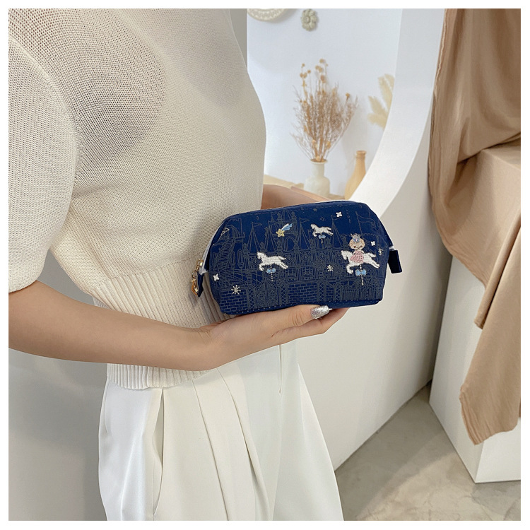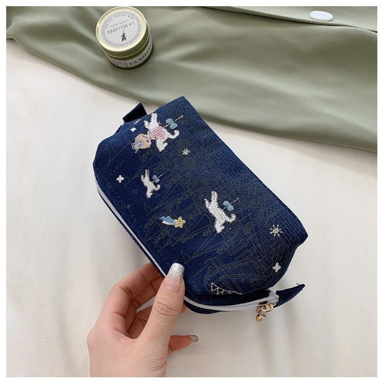 한국 스타일 블랙 립스틱 자수 수납 가방 동전 지갑 휴대용 대용량 여행용 수납 가방 휴대용 화장품 가방스토어 가기