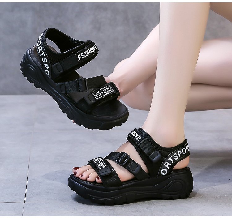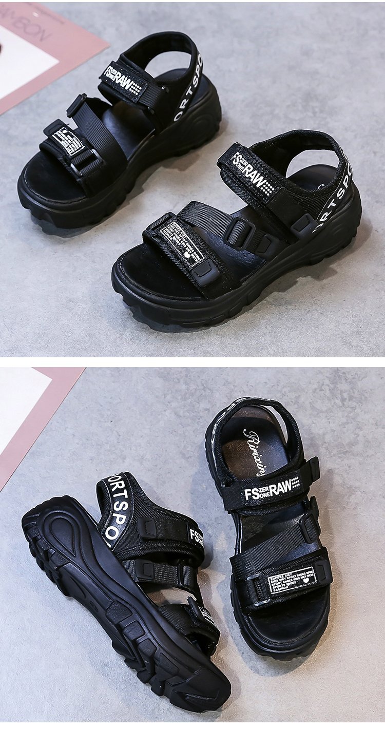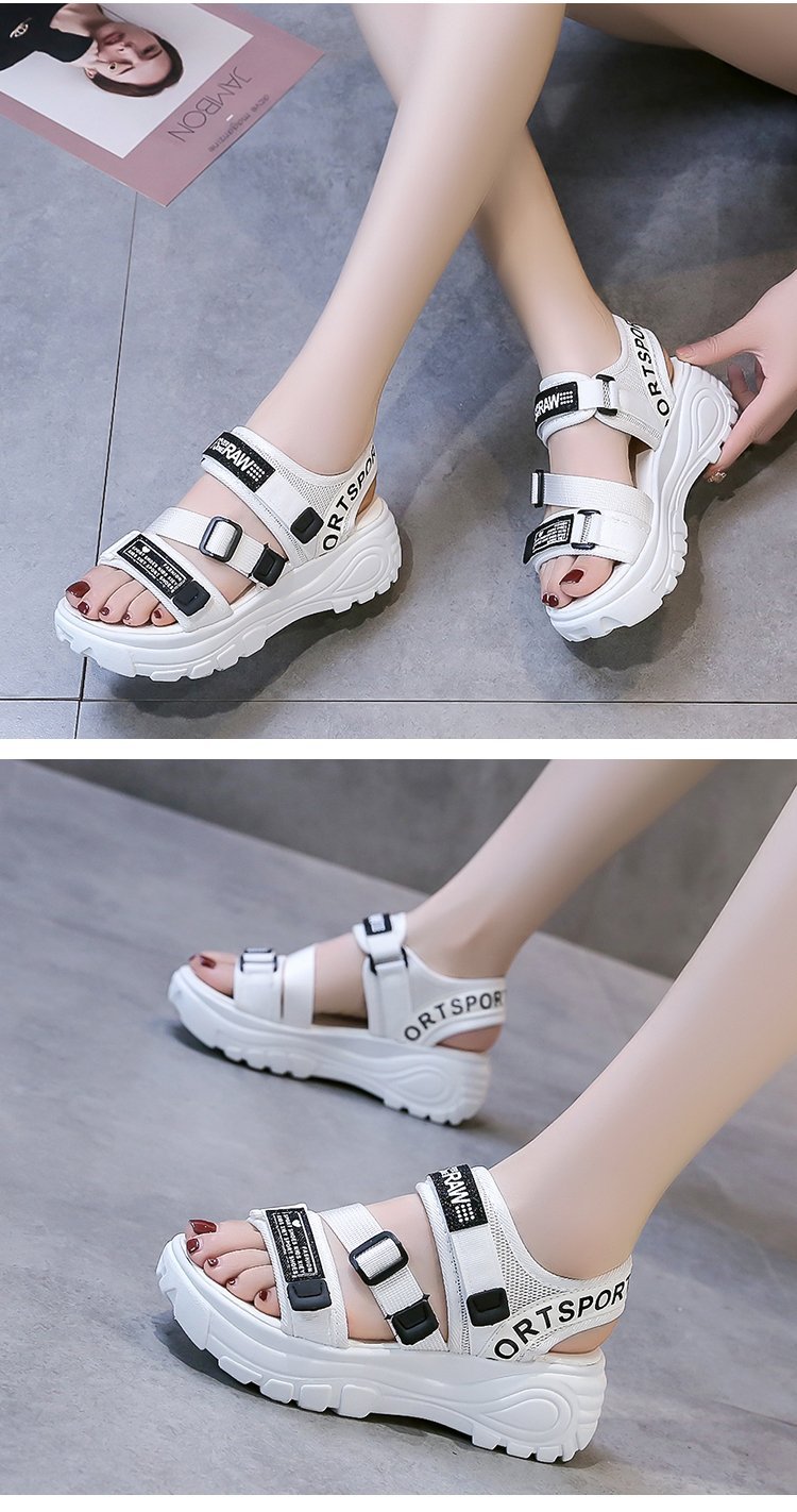 여성용 브레이드 벨크로 스포츠 스타일 샌들 2025 가을 신상 한국 스타일 플랫폼 두꺼운 밑창 캐주얼 대형 샌들스토어 가기