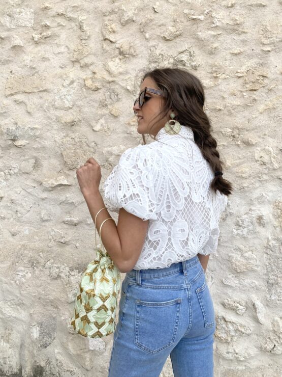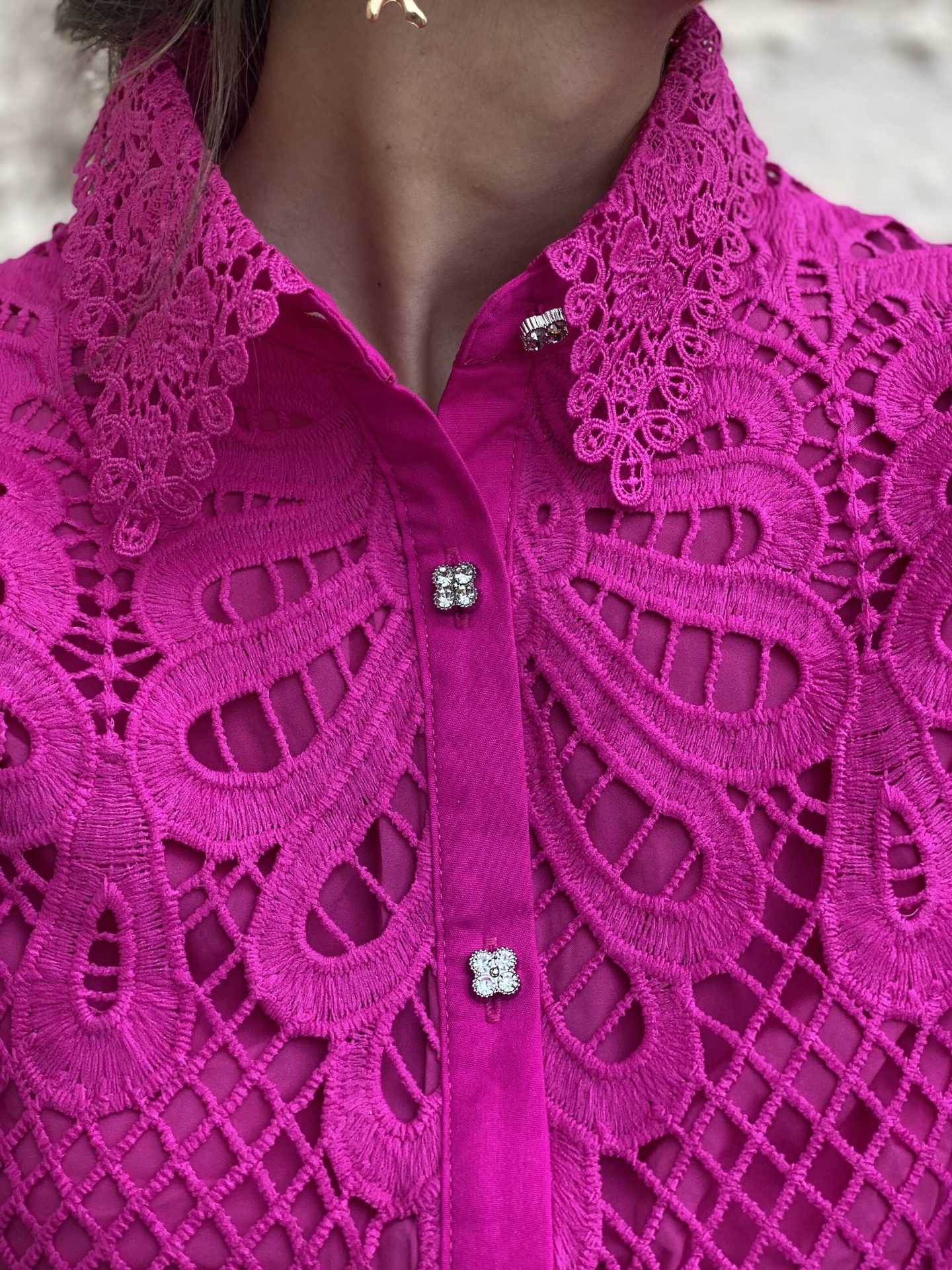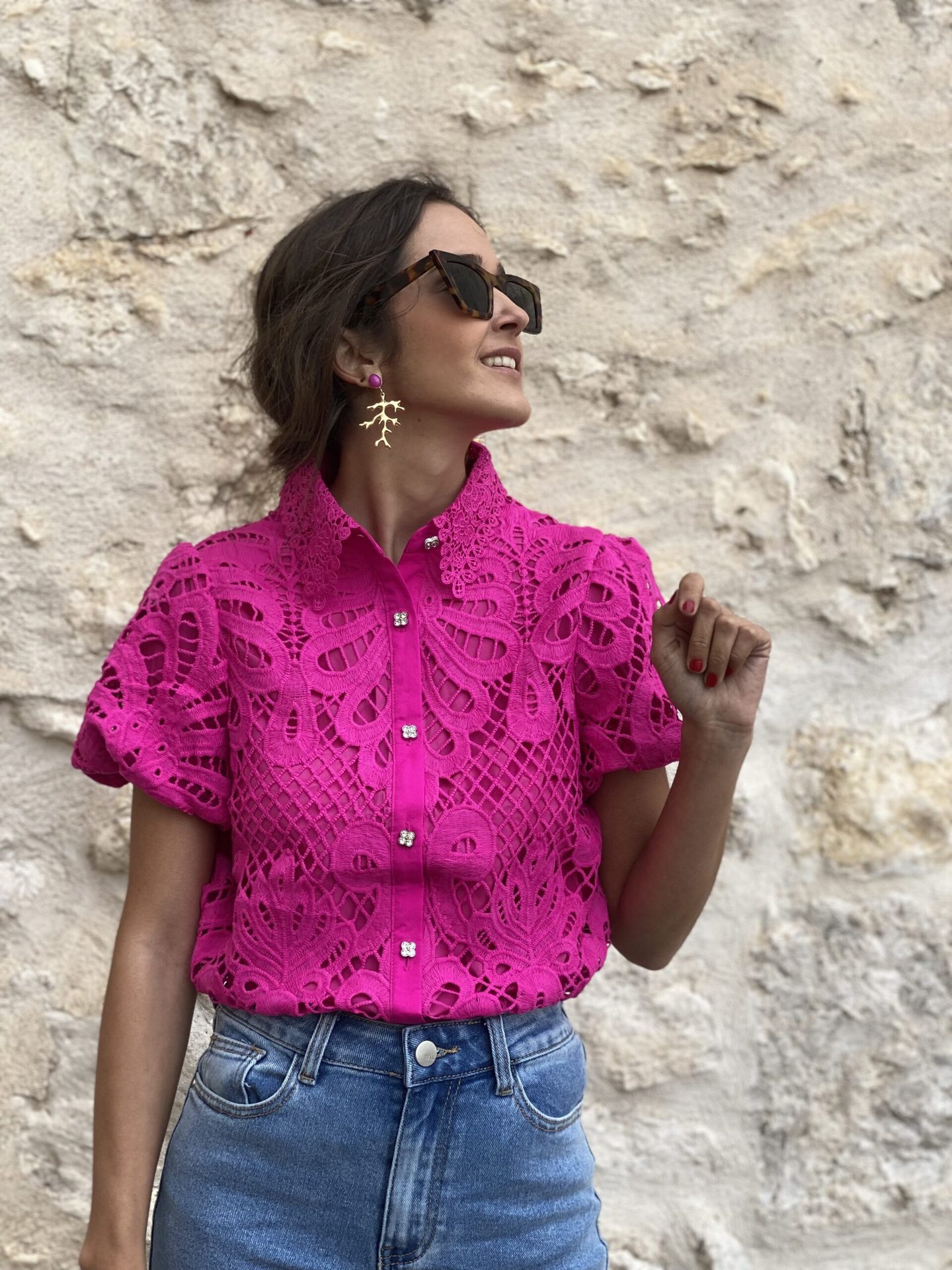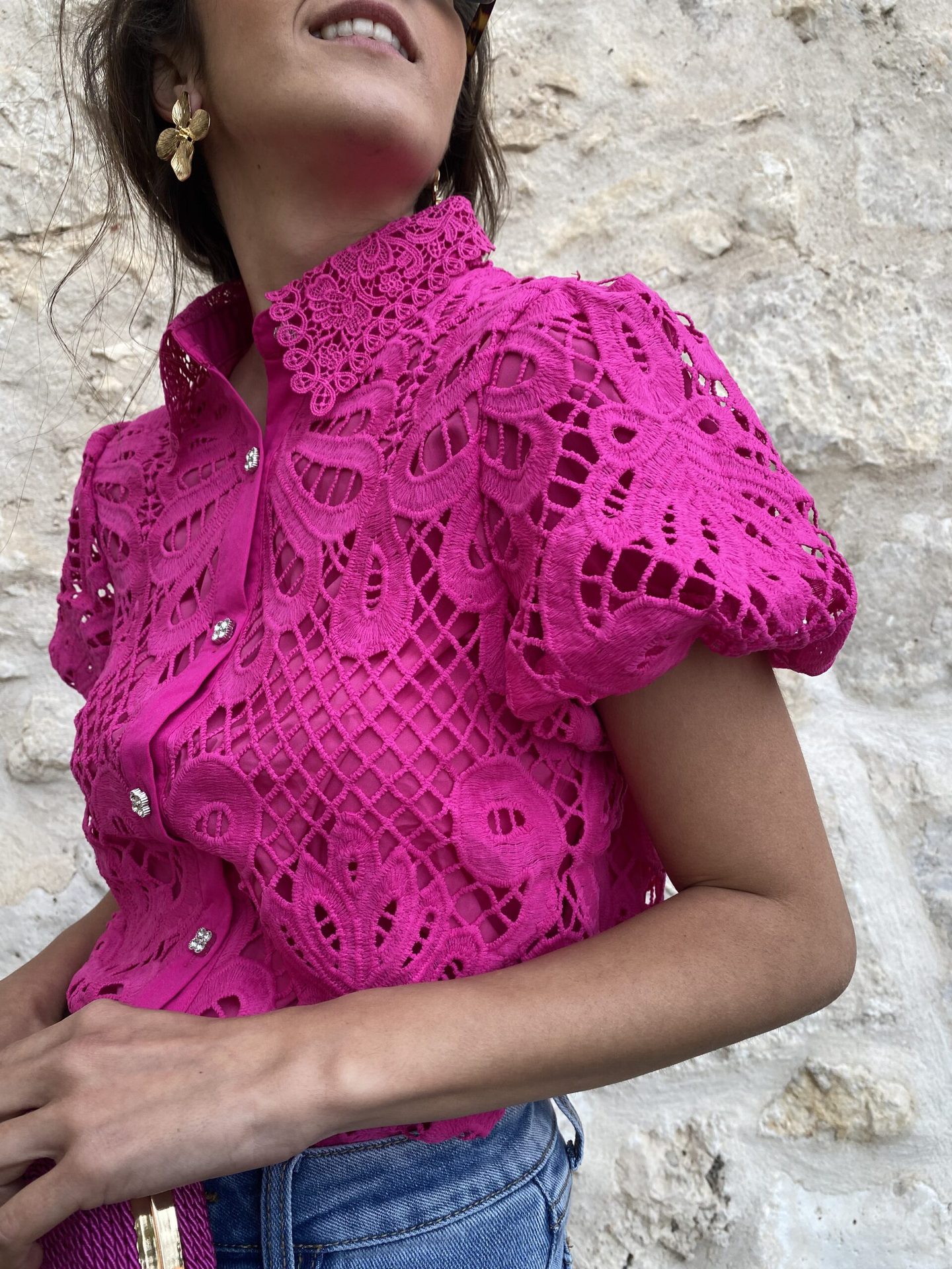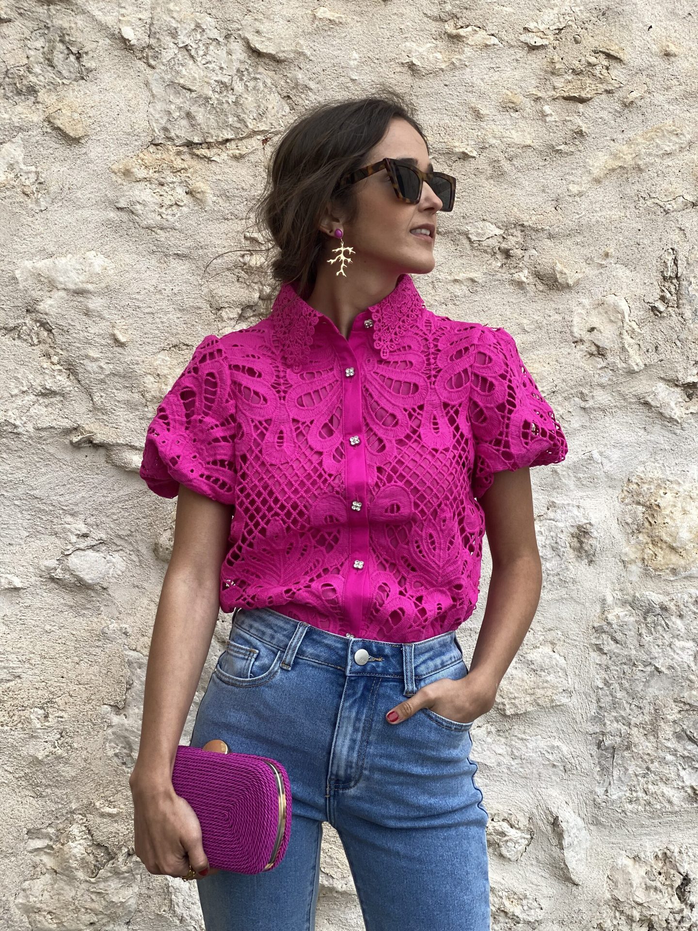국경 간 2023 유럽 및 미국 대외 무역 독립 역 AliExpress 패션 레이스 카디건 중공 레이스 칼라 버블 슬리브 셔츠스토어 가기