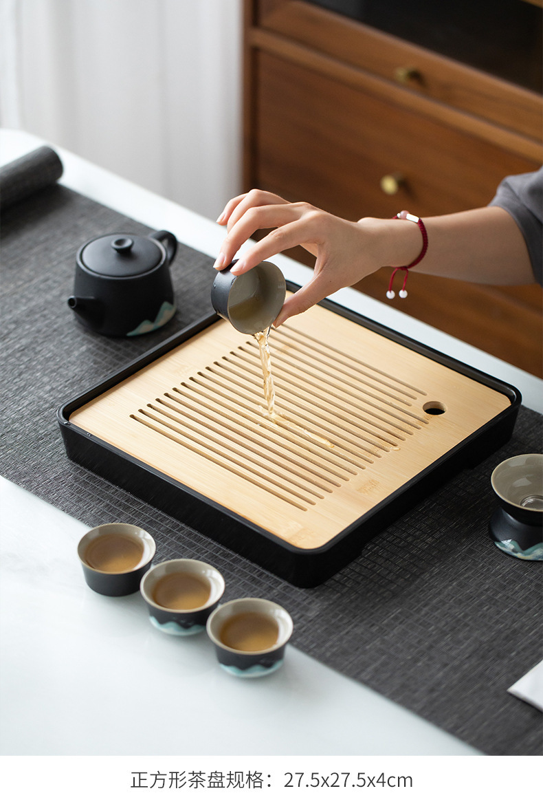 쿵푸 차 세트 세트 검은 도자기 2023 새로운 스타일 홈 간단한 사무실 차 작은 티 트레이 세라믹 주전자 찻잔