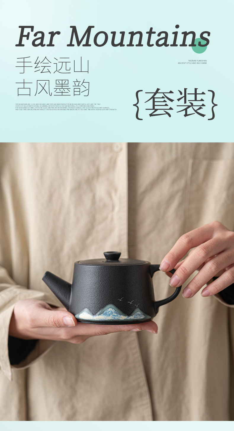 쿵푸 차 세트 세트 검은 도자기 2023 새로운 스타일 홈 간단한 사무실 차 작은 티 트레이 세라믹 주전자 찻잔스토어 가기