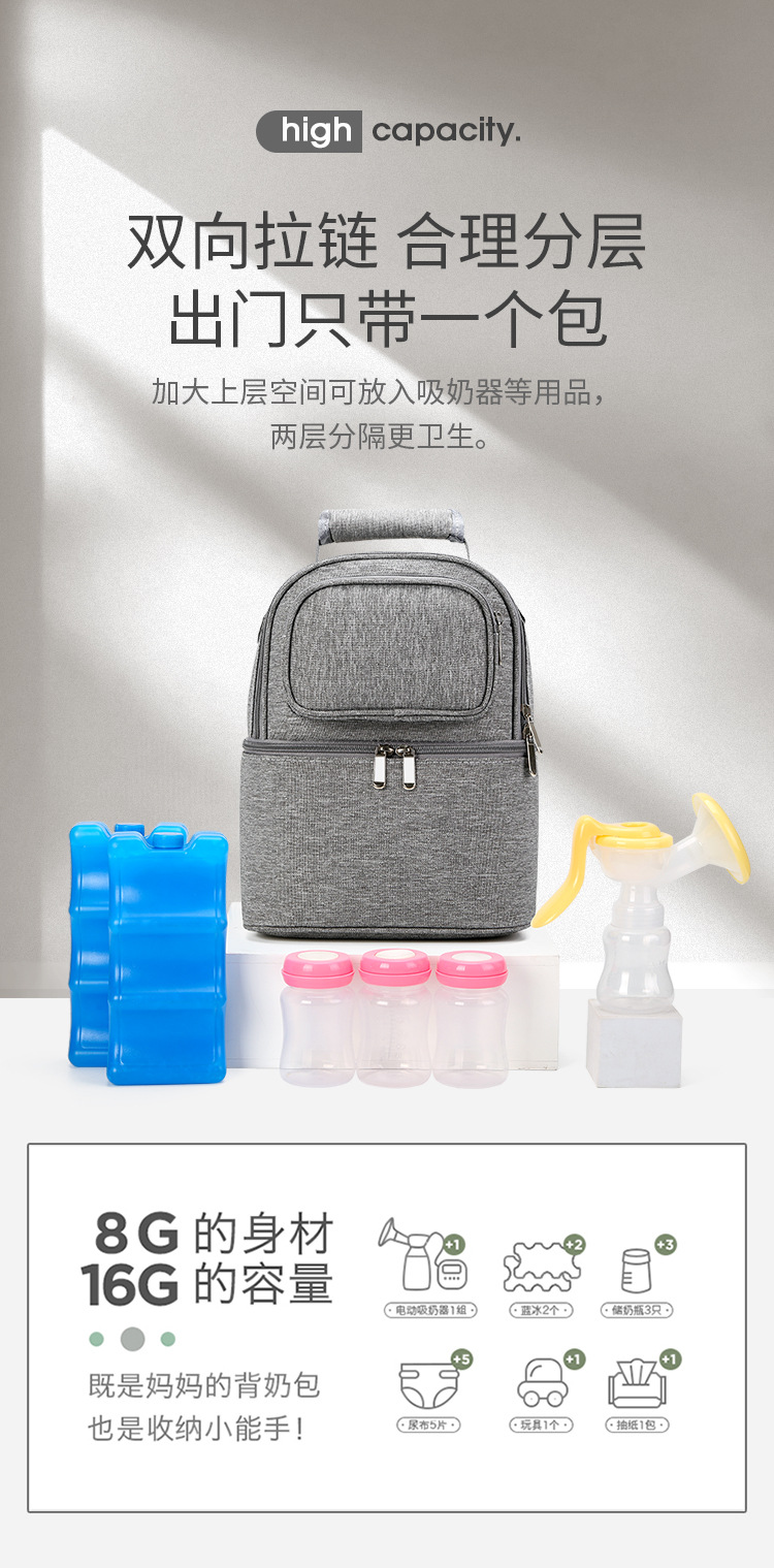 야외 작업 뒤 우유 가방 단열 가방 휴대용 모유 보존 블루 아이스 백 더블 유방 펌프 미라 가방