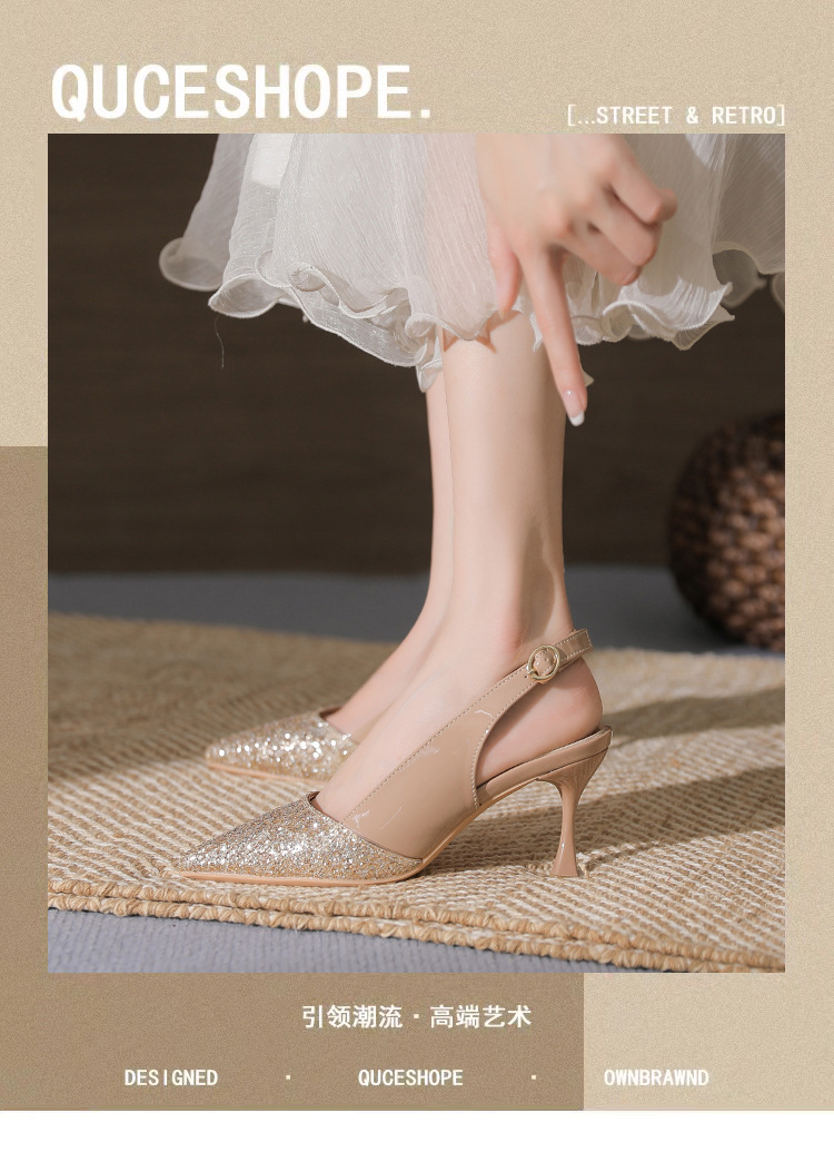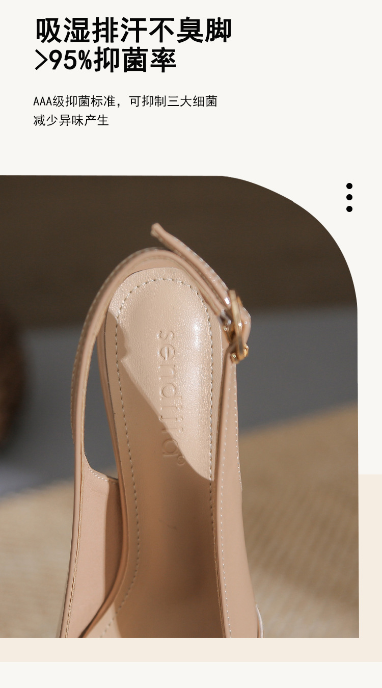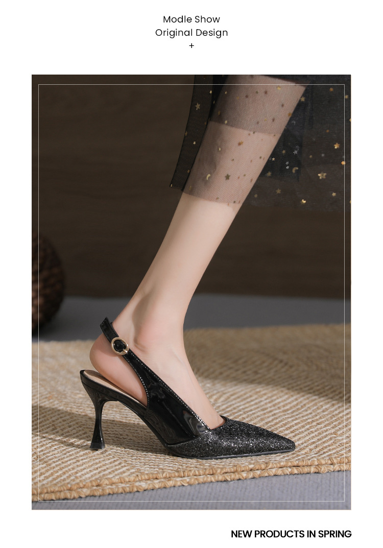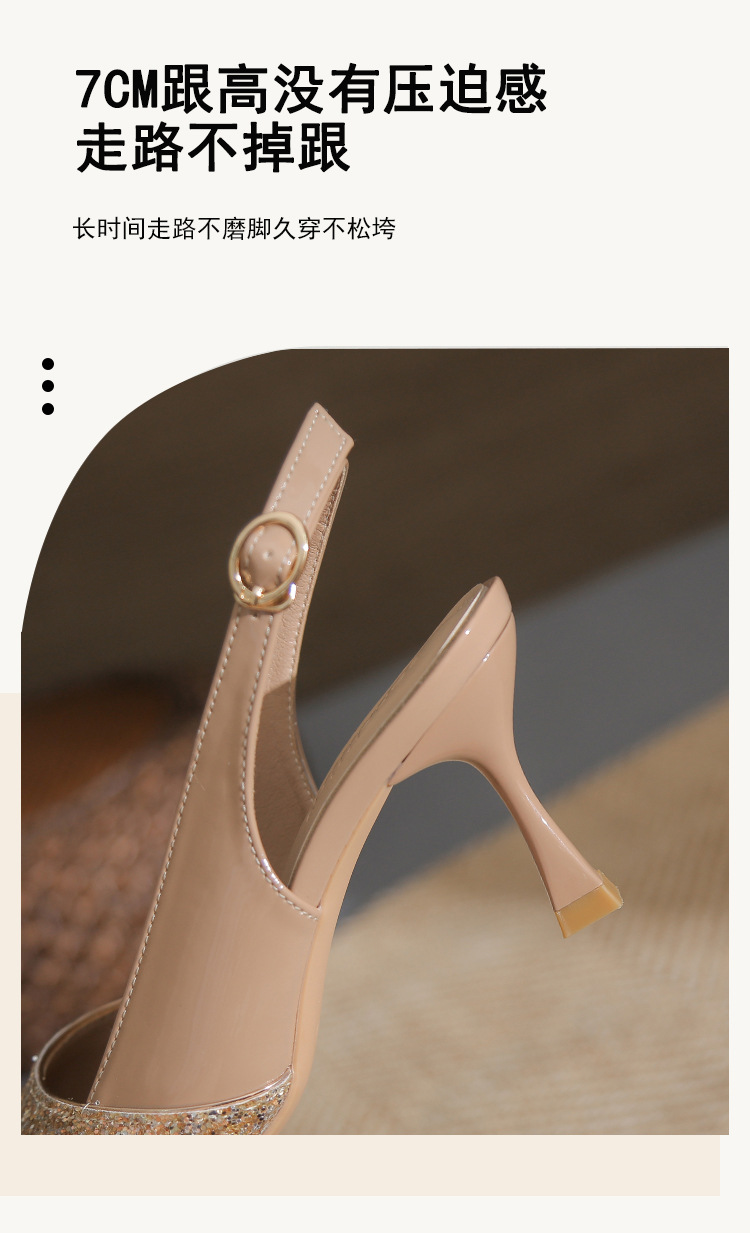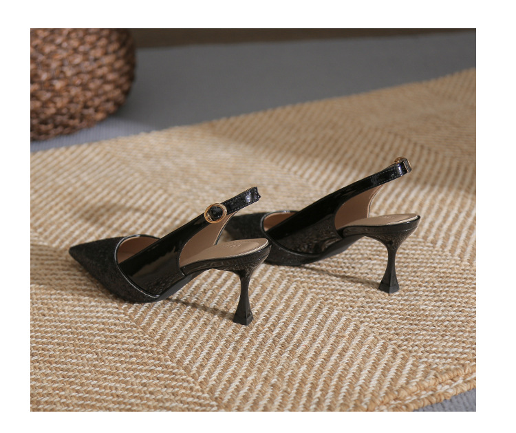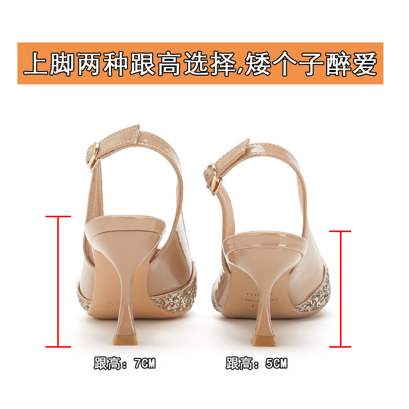 봉합 된 닫힌 발가락 등 빈 샌들 여성 뾰족한 스틸레토 힐 2023 여름 새로운 스타일의 백 스트랩 하이힐 미드 힐 패션 여성 신발스토어 가기