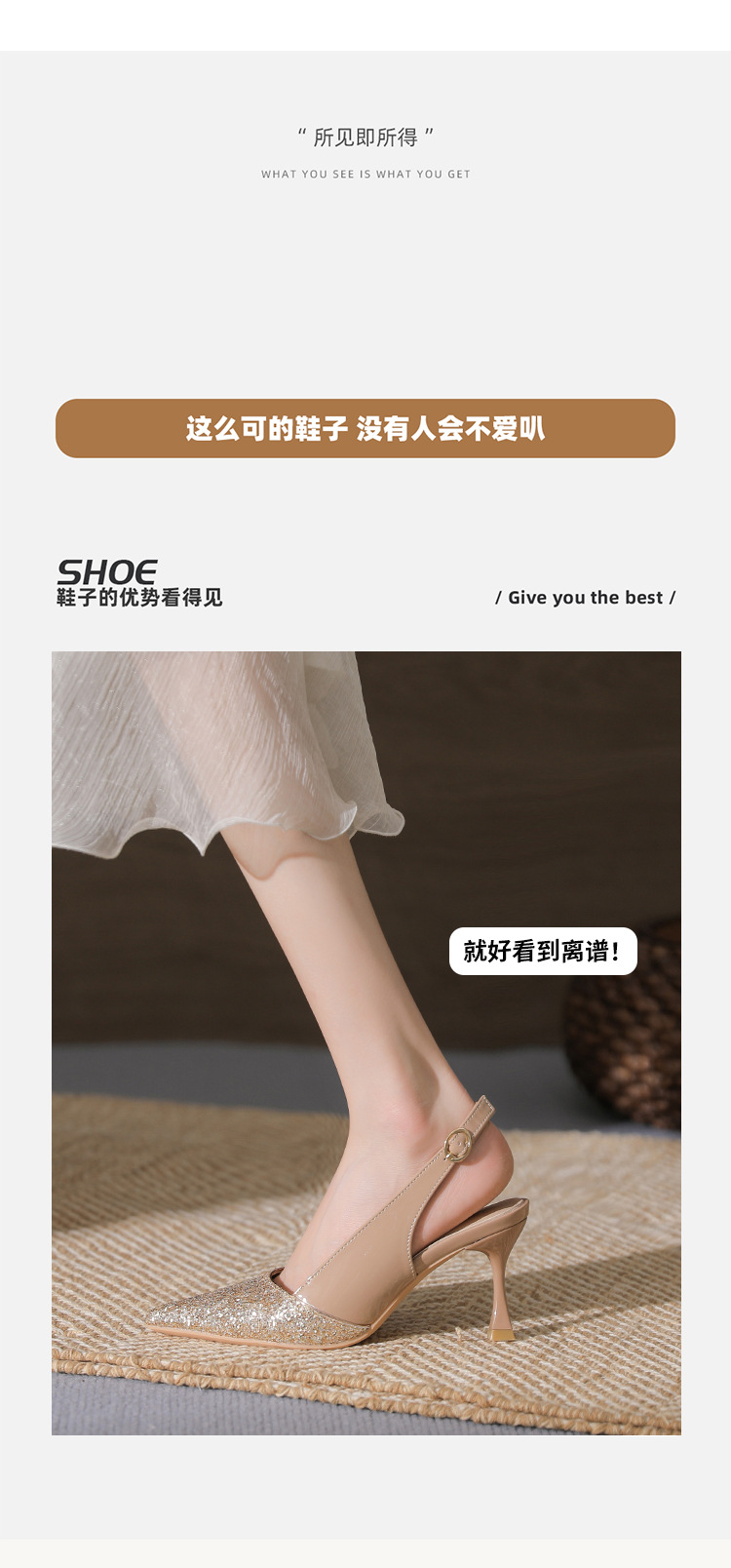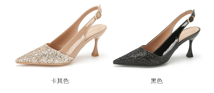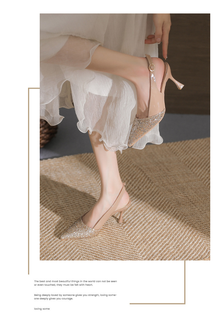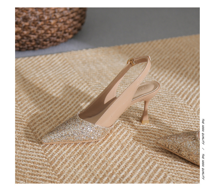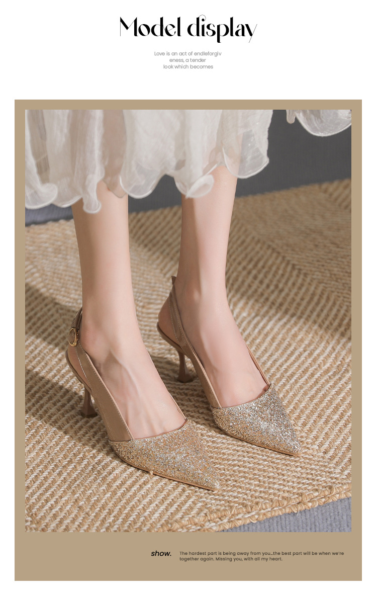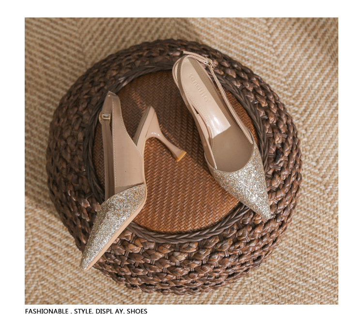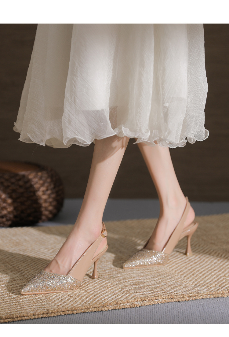 봉합 된 닫힌 발가락 등 빈 샌들 여성 뾰족한 스틸레토 힐 2023 여름 새로운 스타일의 백 스트랩 하이힐 미드 힐 패션 여성 신발스토어 가기