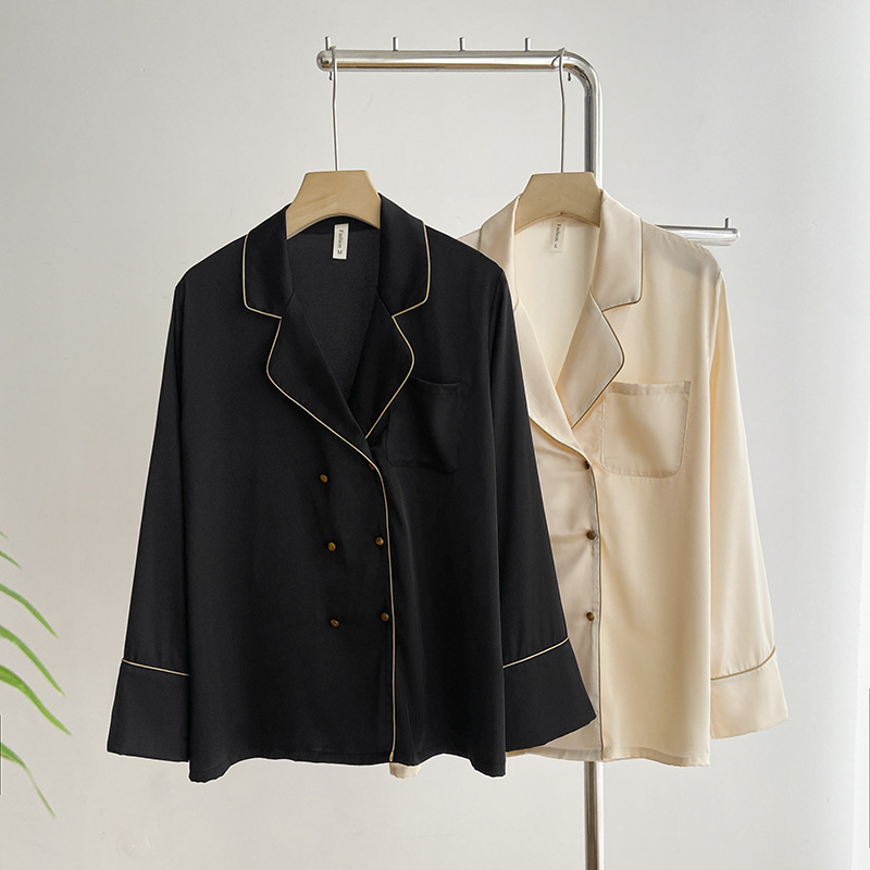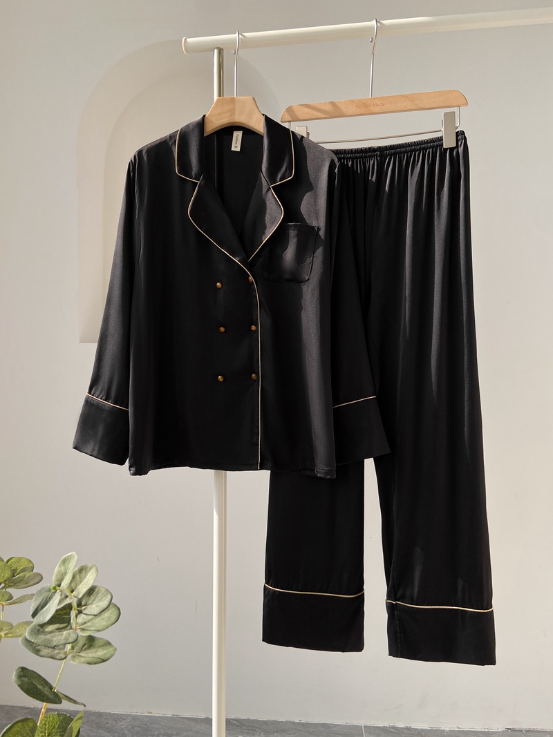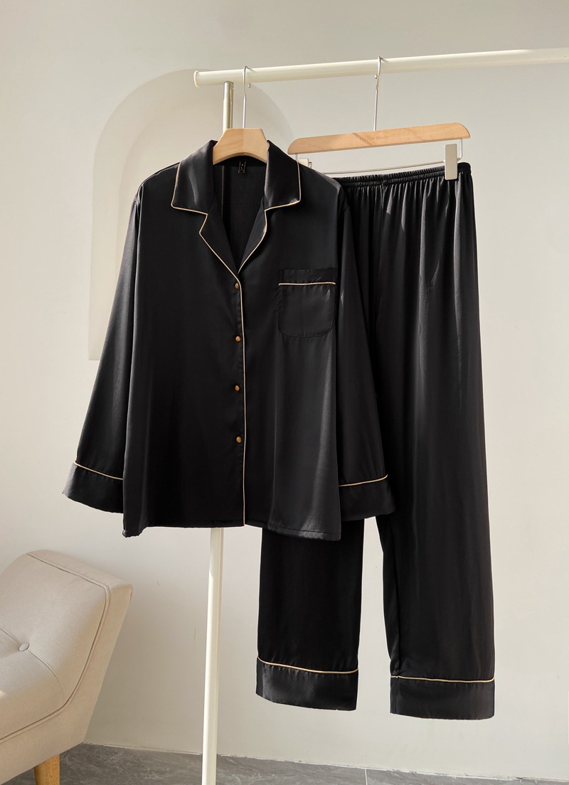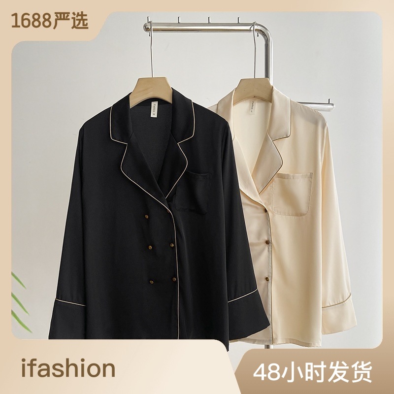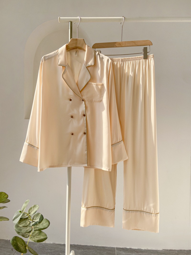 여성용 여름 긴팔 아이스 실크 잠옷 세트 2025 새로운 패션 캐주얼 홈웨어 바지 세트 홈웨어스토어 가기
