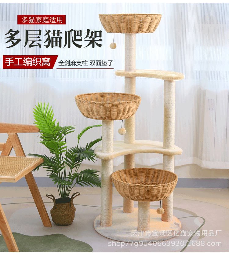 단단한 나무 고양이 등반 프레임 고양이 둥지 고양이 나무 통합 대형 고양이 프레임 땋은 천연 사이 잘삼 기둥 고양이 용품 장난감 동반자 놀이