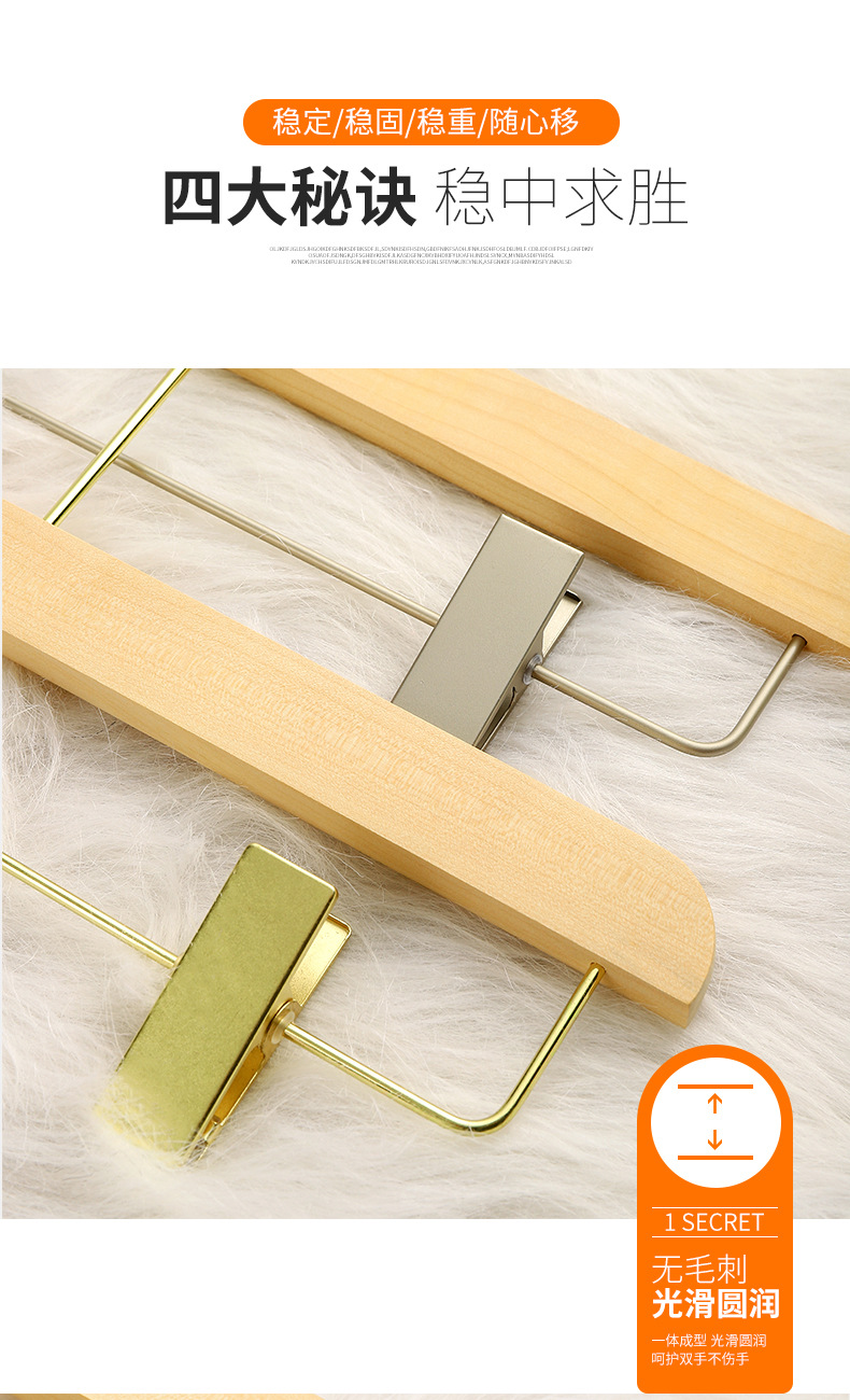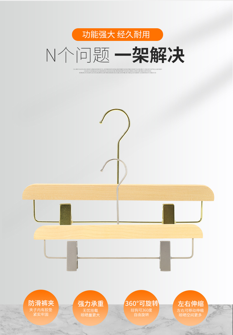 공장 단단한 나무 바지 걸이, 성인과 어린이를 위한 미끄럼 방지 및 흔적 없는 바지 클립, 나무 바지 걸이, 의류 매장 걸이 도매스토어 가기