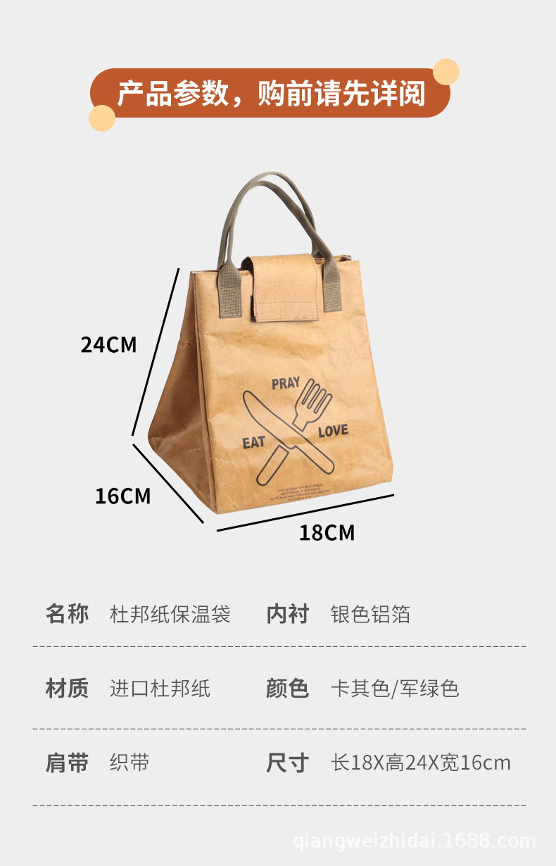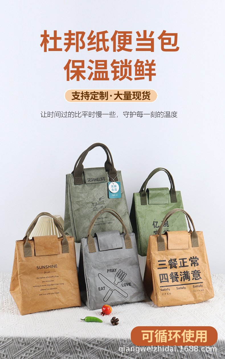 듀폰 종이 절연 가방 알루미늄 호일 두꺼운 도시락 가방 휴대용 듀폰 종이 가방 대용량 점심 가방