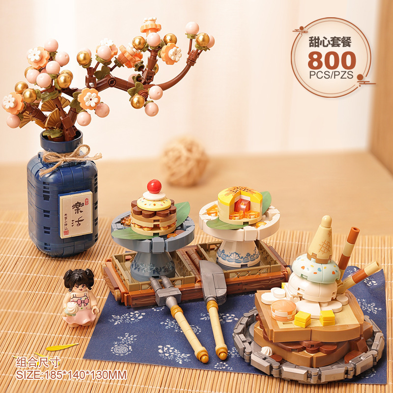 로즈 광둥식 케이크 디저트 조립 퍼즐 블록 밀크크림빵 음식 조립 장식 장난감 남녀 선물스토어 가기