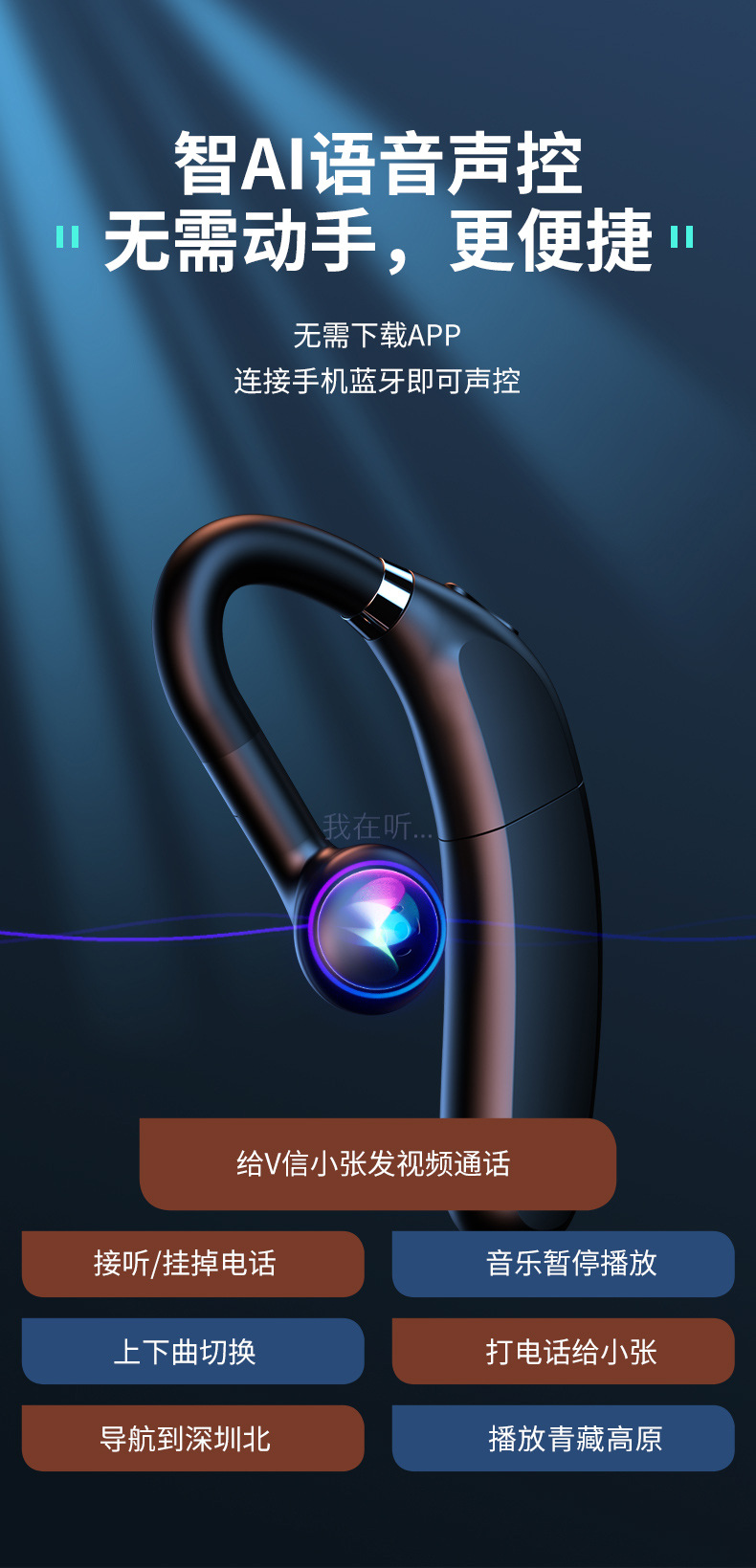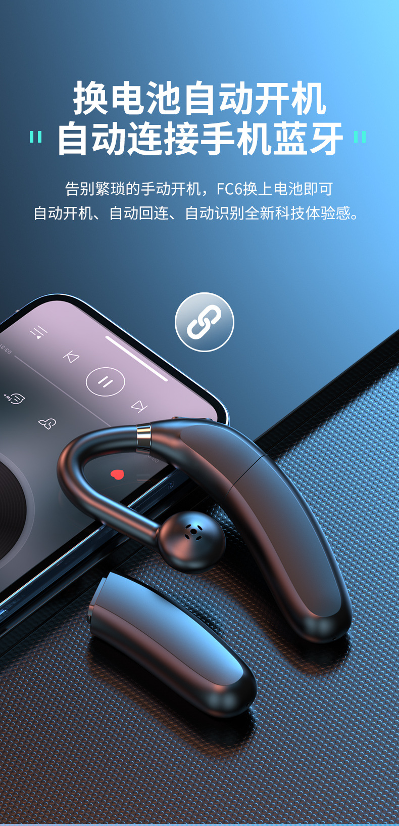FC6 무선 블루투스 헤드셋 듀얼 배터리 고출력 귀 비즈니스 인텔리전스 음성 제어 드라이브 테이크 아웃 유니버셜스토어 가기