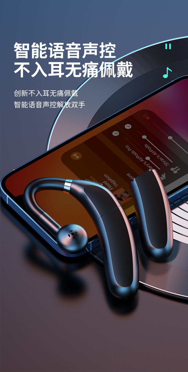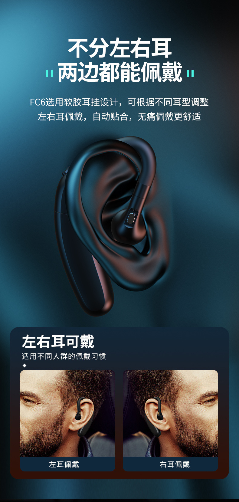 FC6 무선 블루투스 헤드셋 듀얼 배터리 고출력 귀 비즈니스 인텔리전스 음성 제어 드라이브 테이크 아웃 유니버셜