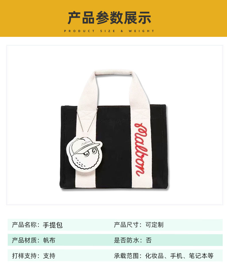 골프 캔버스 핸드백, 직배송, 보스턴백, 남녀공용 수납가방, 배색 디자인