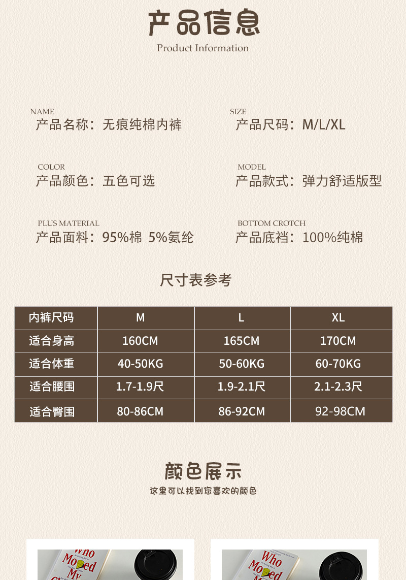 새로운 일본 달콤한 소녀 원활한 탄성 허리 속옷 면 속옷 여성 제조 업체 도매