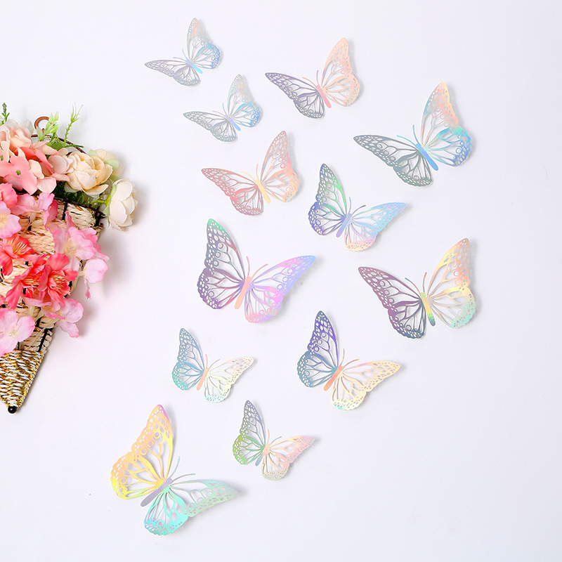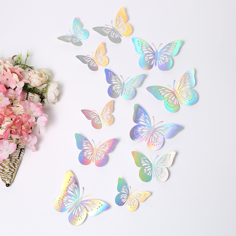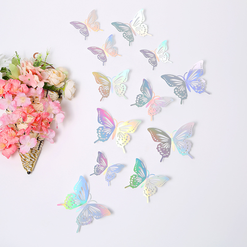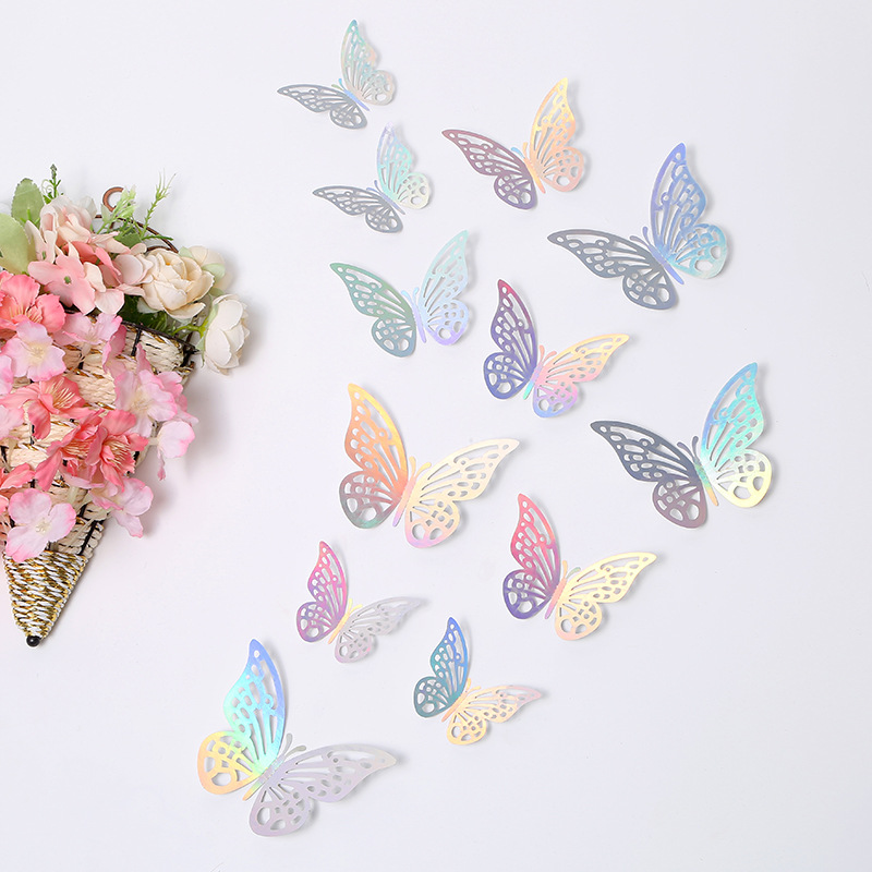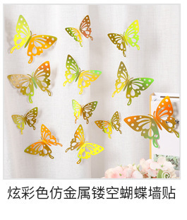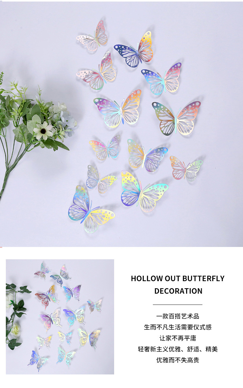 컬러 중공 나비 스티커 현대 간단한 북유럽 종이 시뮬레이션 나비 벽 스티커 침실 벽 장식 벽 스티커