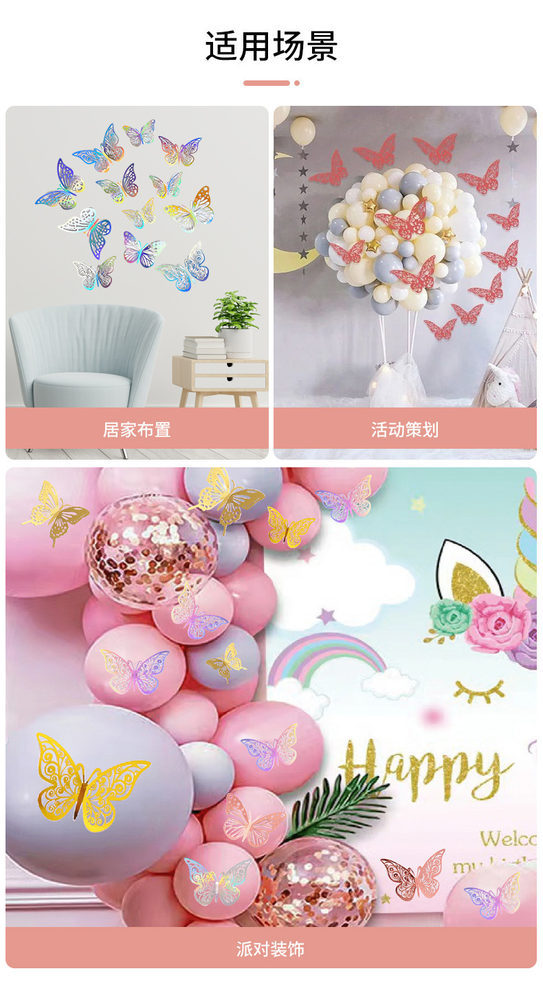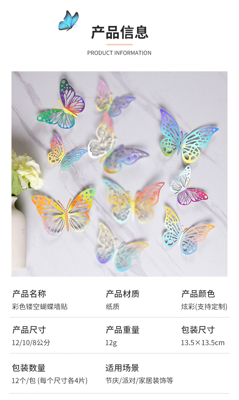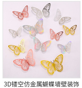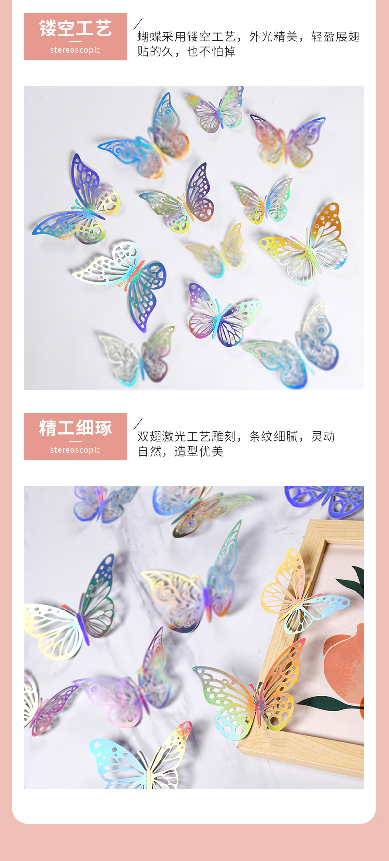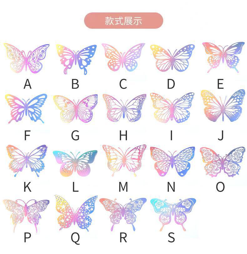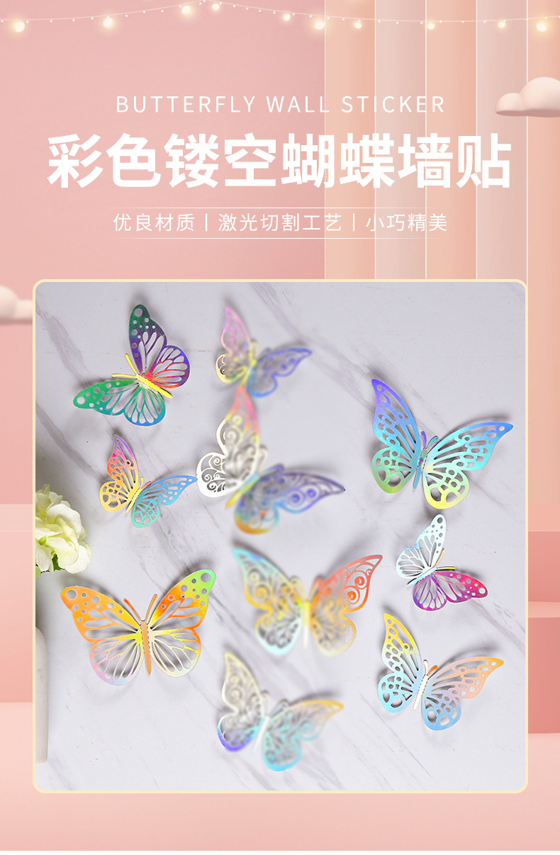 컬러 중공 나비 스티커 현대 간단한 북유럽 종이 시뮬레이션 나비 벽 스티커 침실 벽 장식 벽 스티커스토어 가기